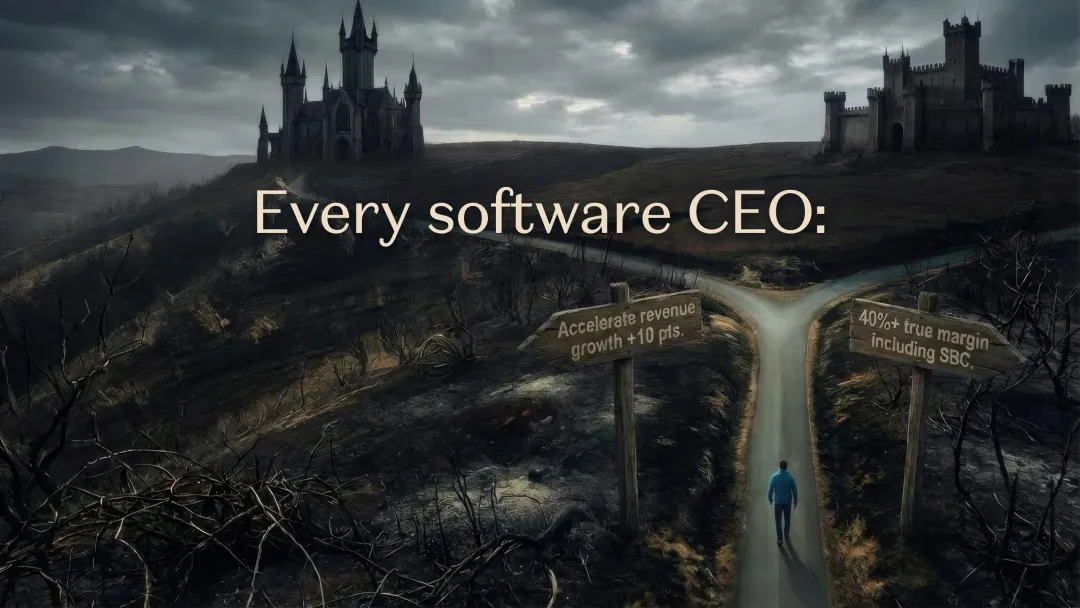 在12-24个月内,将公司重建成拥有40%以上真实营业利润率的企业。这里的“真实”利润率是指将股票期权激励也计入实际支出后的利润。作者认为,对于那些无法在短期内通过 AI 产品实现收入大幅增长的公司,这是唯一的价值创造之路。为了实现这一路径,作者给出了几点执行建议:
