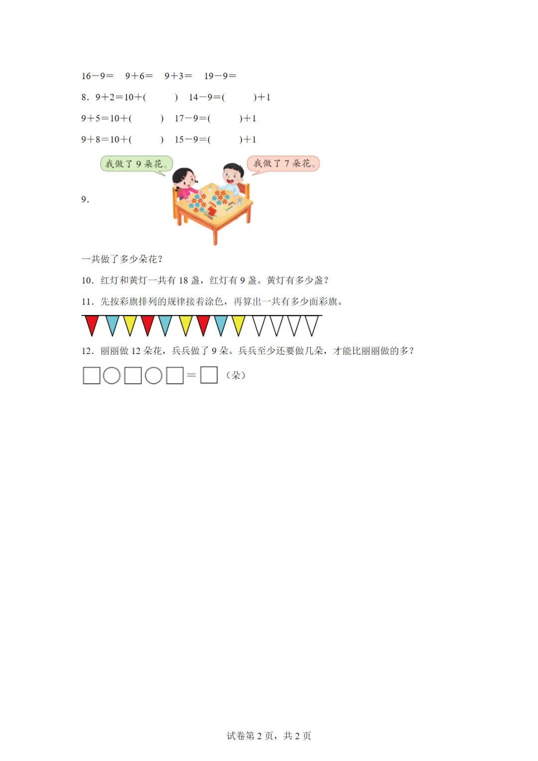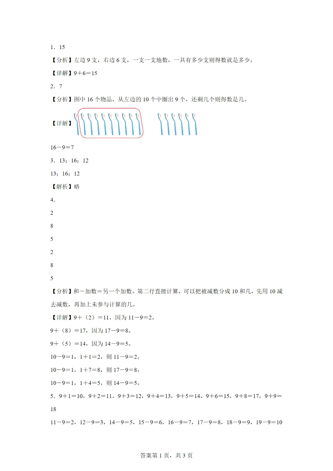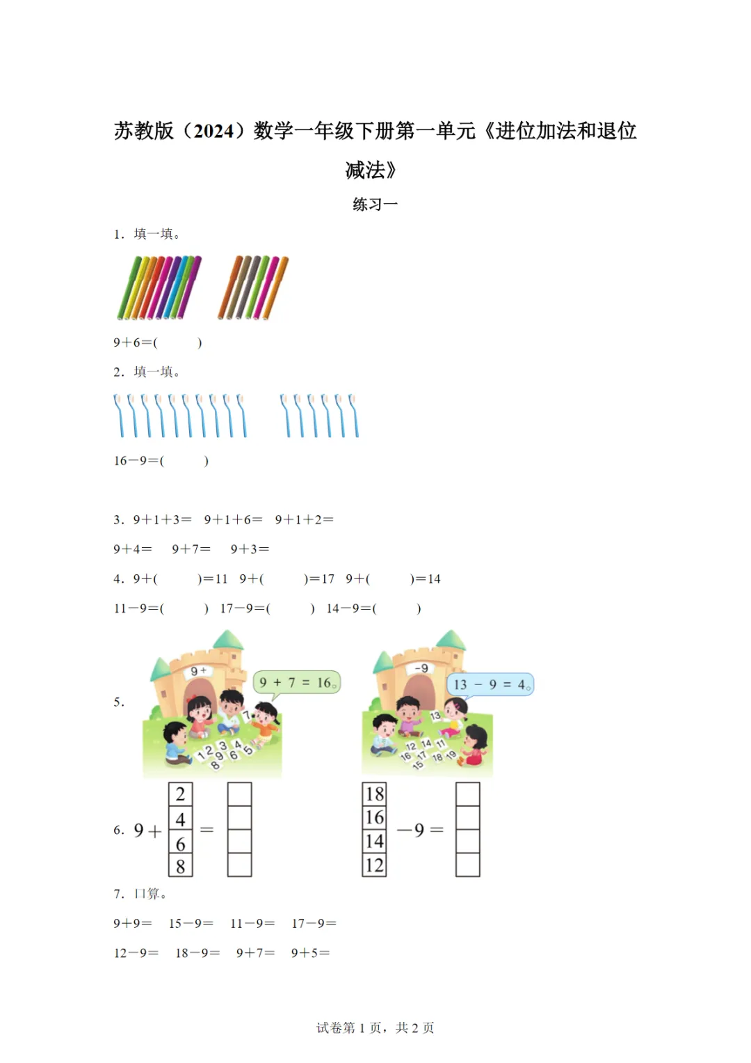 【高清电子版】苏教版数学一年级下册第一单元《进位加法和退位减法》练习一