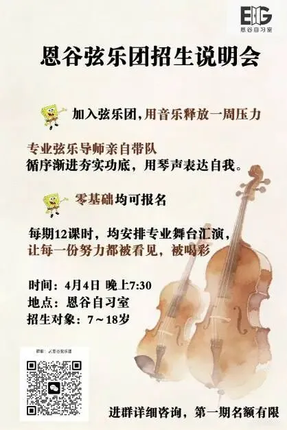 孩子们可以在优美的旋律中,释放一周的压力与情绪;在乐团的集体氛围里,更快乐、更投入地学习乐器。