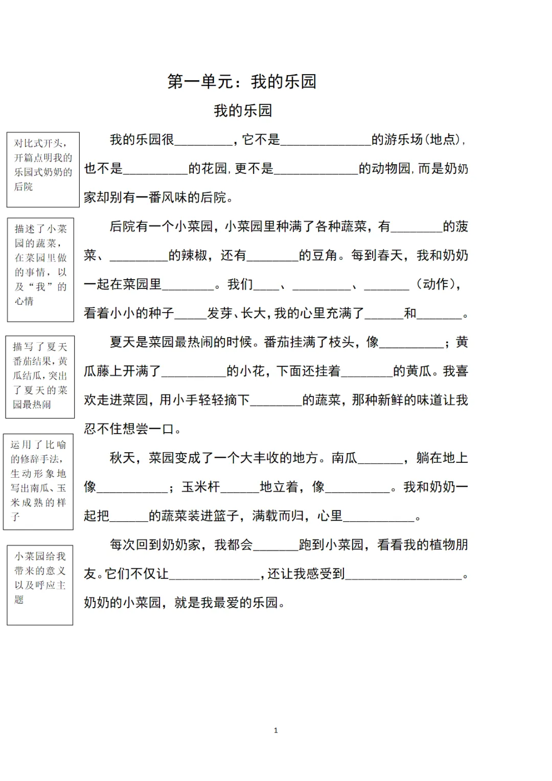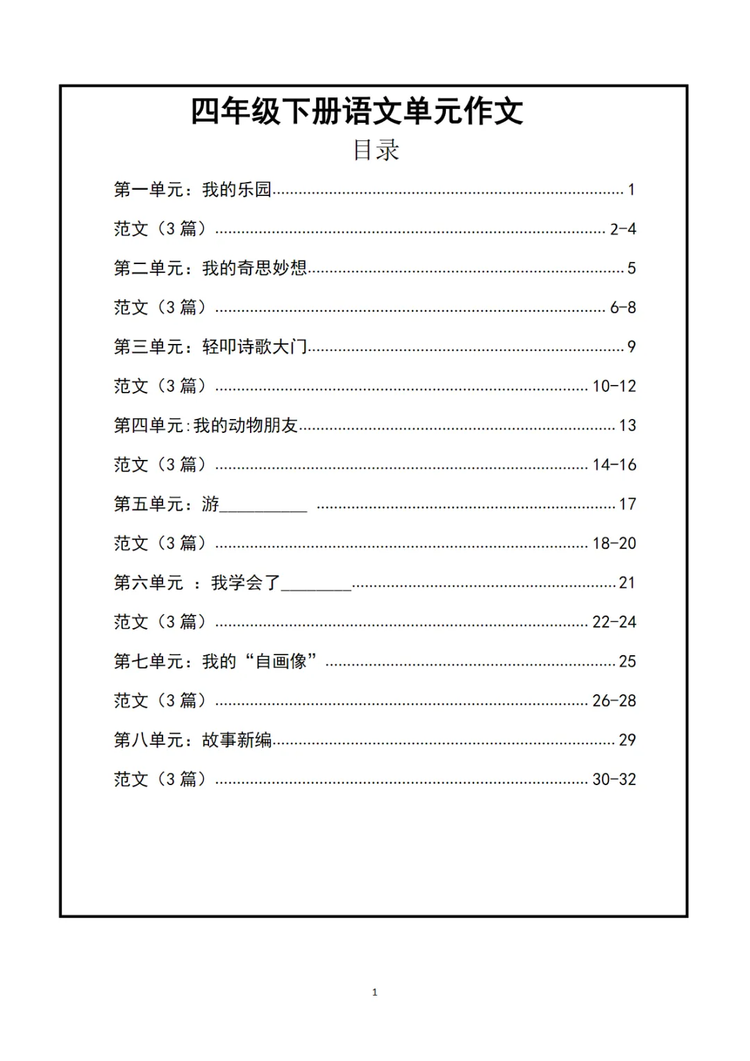 【高清电子版】26春 四年级下册语文第1-8单元作文支架