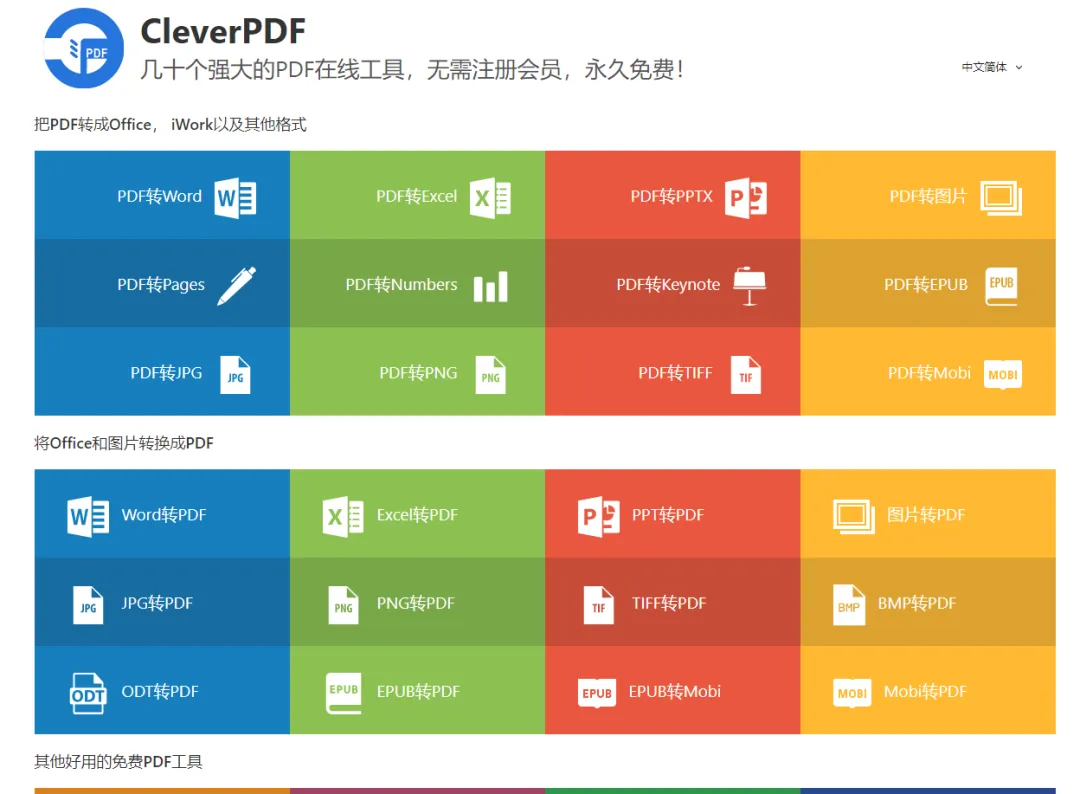 CleverPDF的转换功能,可以把Office和图片转换成PDF。