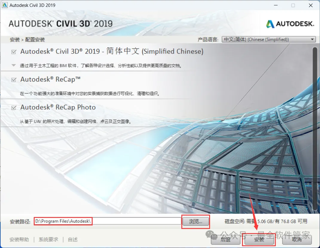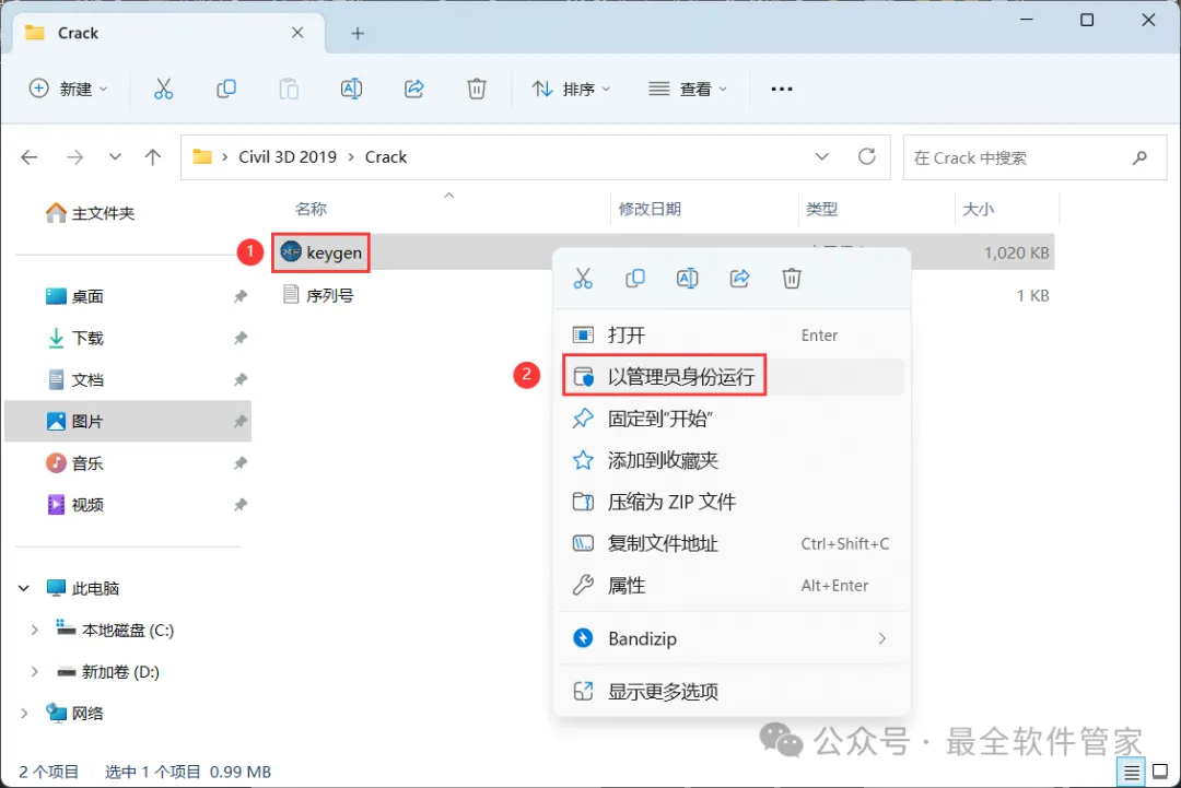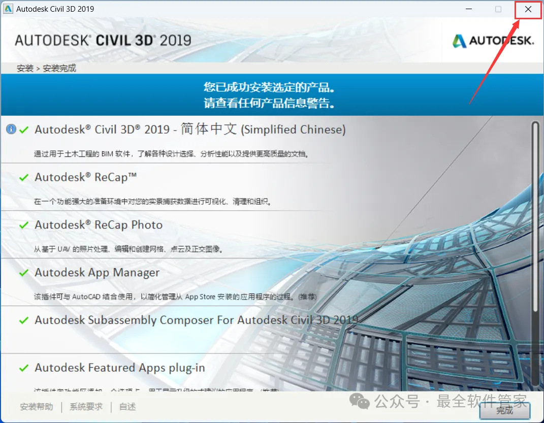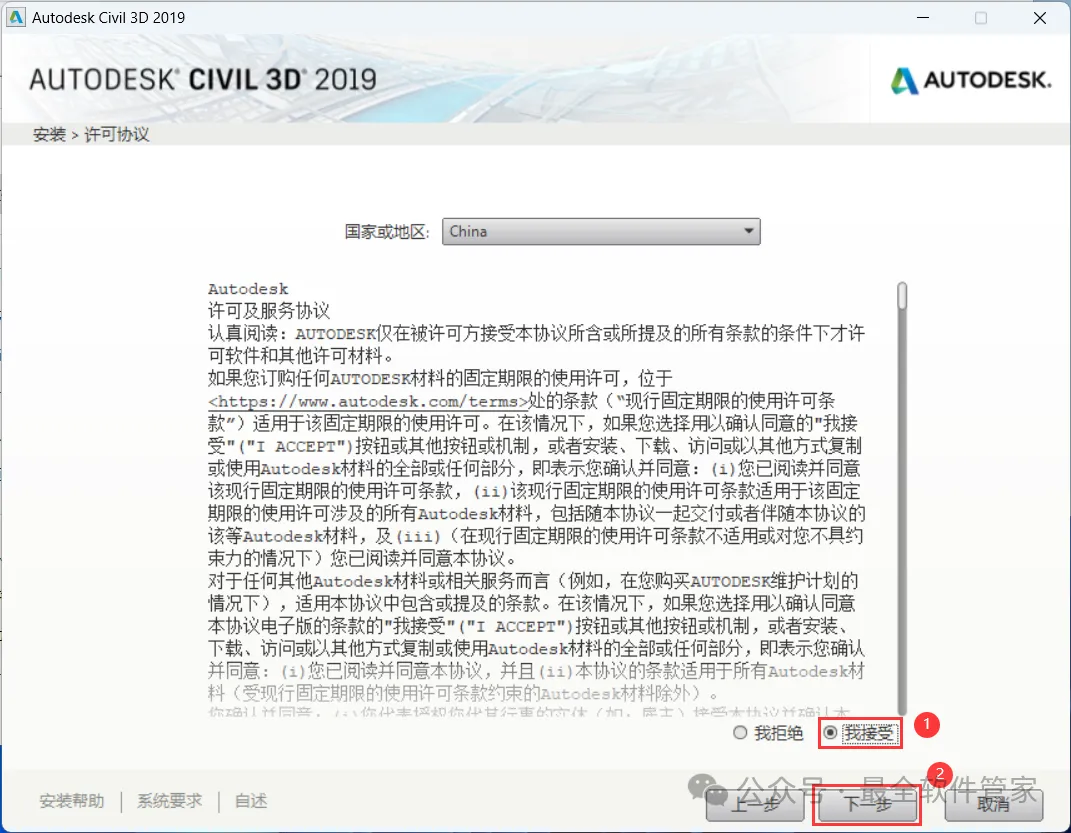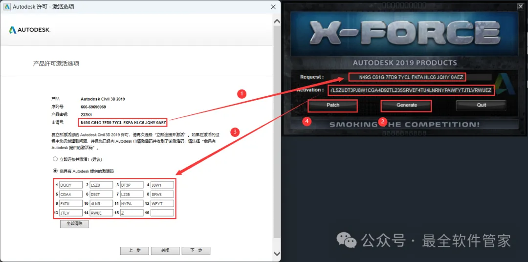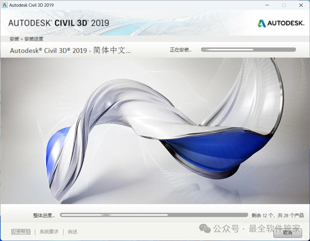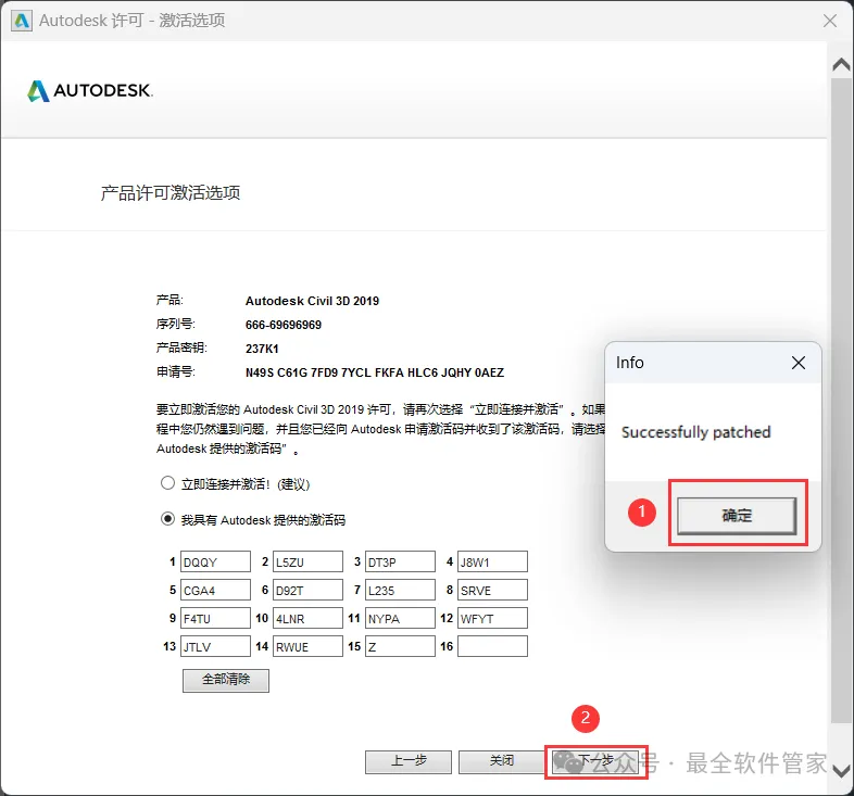 安装需知[软件名称]:Civil 3D 2019[软件大小]:5.04G[软件语言]:中文简体[安装环境]:Win7及以上版本[下载地址]:公众号内回复:Civil3D[不限速下载]:免费获取百度网盘不限速下载工具。公众号内回复:不限速[注意事项]:安装前请关闭网络、杀毒软件和防火墙,否则易安装失败。公众号内回复:1[解压软件]:小编用的解压软件是Bandizip,获取Bandizip软件安装包。公众号内回复:2安装教程1、下载Civil 3D 2019软件安装包到电脑上,右键选择【解压到Civil 3D 2019\】2、右键【打开】解压后的文件夹 3、找到【Setup】文件夹,右键【打开】它4、找到【Setup】应用程序,右键选择【以管理员身份运行】它 5、点击【安装】6、勾选【我接受】,再点击【下一步】 7、软件默认安装在C盘,可自定义更改软件安装位置,这里小编选择安装在D盘;点击【安装】 8、软件安装中,稍等片刻9、软件安装成功,点击右上角【关闭按钮】10、回到桌面,右键桌面上的【Civil 3D 2019软件图标】,点击【打开】 11、软件正在打开,启动界面如下:12、点击【输入序列号】 13、点击【激活】14、序列号输入:666-69696969,产品密钥输入:237K1,再点击【下一步】 15、点击右上角【关闭按钮】 16、点击【激活】 17、序列号输入:666-69696969,产品密钥输入:237K1,再点击【下一步】 18、点击【我具有Autodesk提供的激活码】 19、回到Civil 3D 2019文件夹,找到【Crack】文件夹,右键【打开】它 20、找到【keygen】程序,右键选择【以管理员身份运行】它21、打开软件界面,将软件的【申请号】填入到程序的【Requset】内,再点击【Generate】,将程序的【Activation】填入到软件的【激活码】内,再点击【Patch】 22、点击【确定】,再点击【下一步】23、点击【完成】 24、软件打开成功,运行界面如下:25、以上就是Civil 3D 2019软件安装的全过程,要是对你有帮助的话,请为小编点个赞! 免责声明:软件资源均来源于网络,仅供用户交流学习与研究使用,版权归属原版权方所有,版权争议与本公众号无关,用户本人下载后不能用作商业或非法用途,否则后果均由用户承担责任;如果您访问和下载此文件,表示您同意只将此软件用于参考、学习而非其他用途,否则一切后果请您自行承担,请于下载后24小时内删除,不允许用于商业用途,否则法律问题自行承担。如果您喜欢该软件,请支持正版软件,购买注册,得到更好的正版服务。