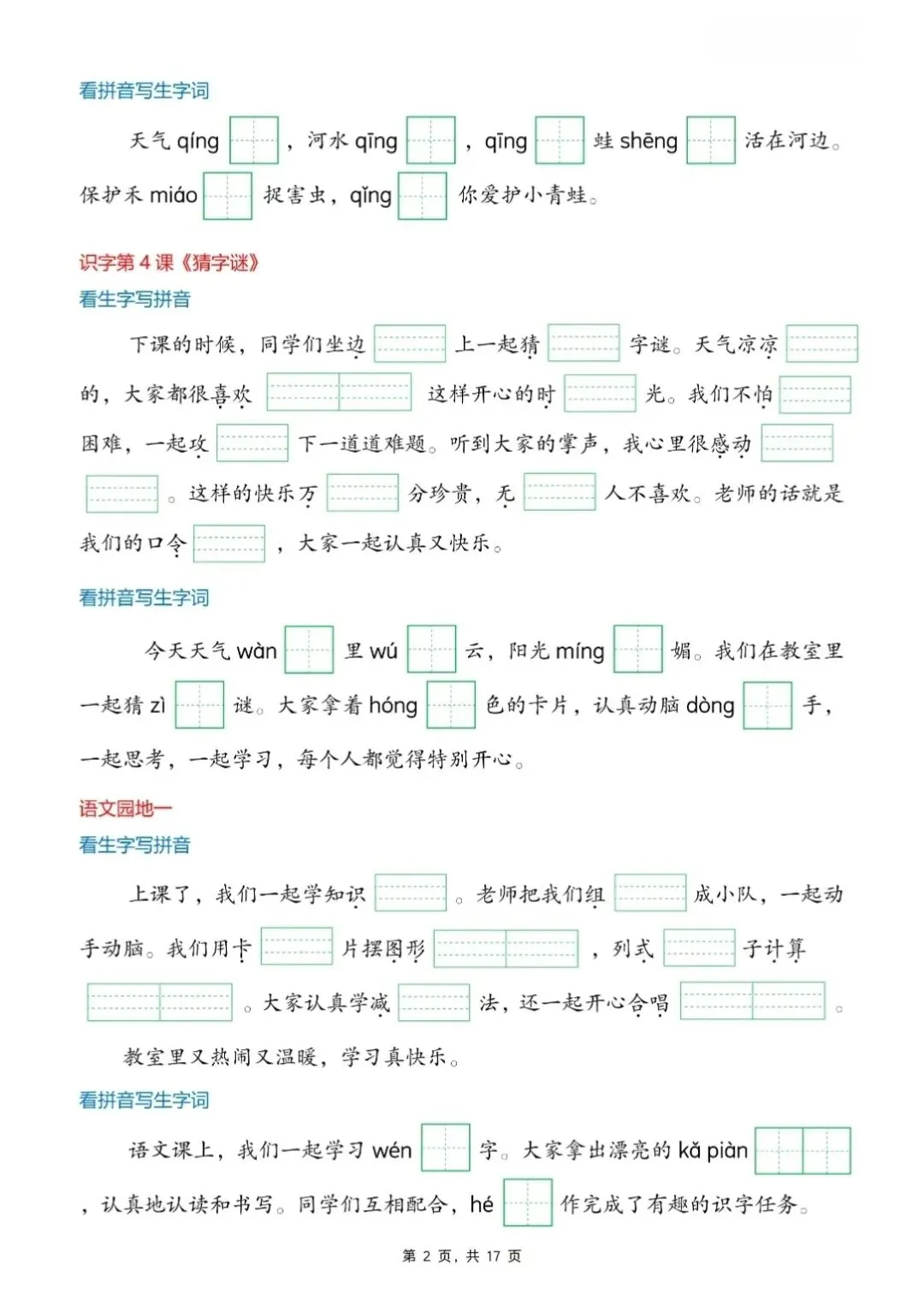 电子版可打印,随打随练,课前预习、课后巩固、单元复习、期中期末考前冲刺全都适用,孩子可自主完成练习,家长辅导不用愁,是一年级下册语文字词巩固提升的必备资料!