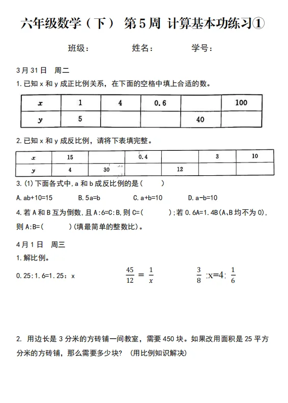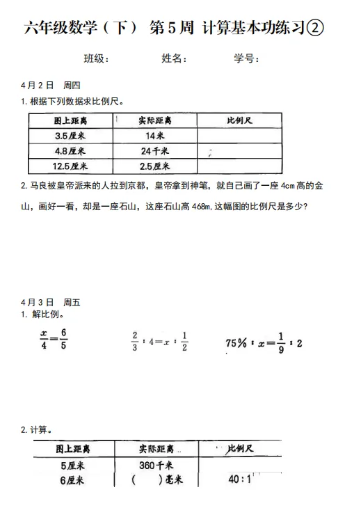基本功|青岛版63制六年级数学下册第5周计算基本功(文末附电子版下载链接) 好 好 学 习 报 效 祖 国 计算基本功 电子版下载链接: 点击左下角阅读原文,输入提取码“8888”即可获取电子版资料。 喜欢我可以点个关注哦 编辑丨排版 张张老师