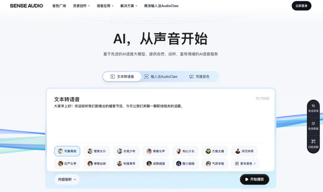 商汤科技推出商汤输入法AudioClaw及SenseAudio AI语音开放平台。AudioClaw集成语音输入、AI会议助理、知识库等功能,支持微信接入和语音交互。SenseAudio提供70+精品音色及ASR、TTS、文生图/视频等能力。