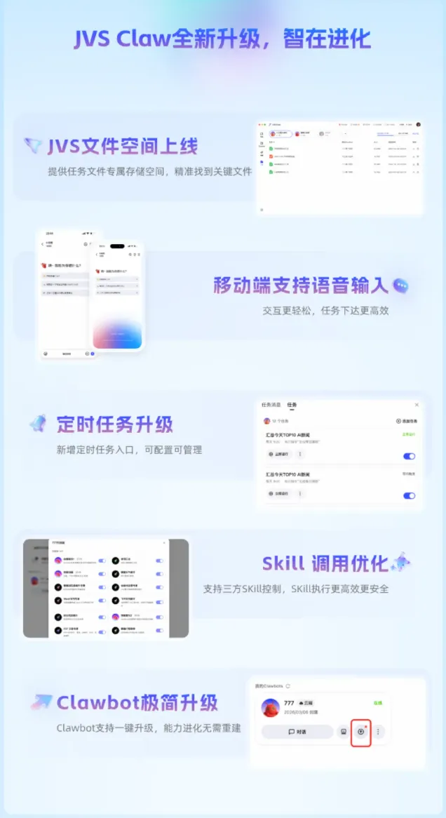 阿里云JVS Claw全面开放公测,用户无需邀请码可访问使用。新版本新增语音输入、5GB专属文件空间、一键修复、Skill开关等功能,支持定时任务管理和Clawbot一键升级。新用户可享7天免费体验,付费版”匠心版”首月低至39元,用户无需购买Mac mini硬件或承担API费用可使用云端OpenClaw服务。