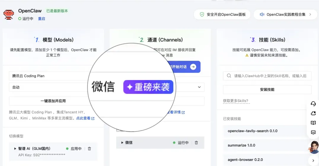 微信推出微信ClawBot插件,支持接入 OpenClaw(龙虾)。用户通过「我-设置-插件」获取安装指令,扫码可将龙虾连接至微信,实现聊天式远程操控。目前插件逐步放量中,需更新至微信最新版本。同时,腾讯云 Lighthouse(含企业版 Claw Pro)、自研 WorkBuddy、本地 QClaw 等也已支持微信通道。