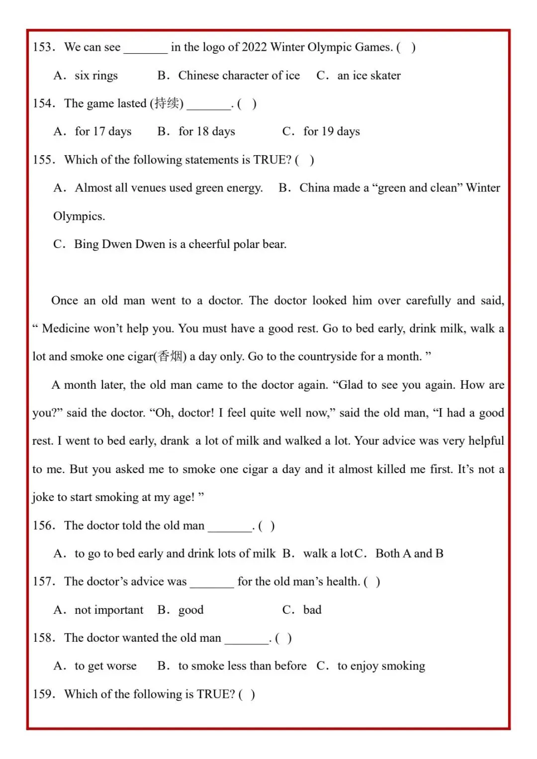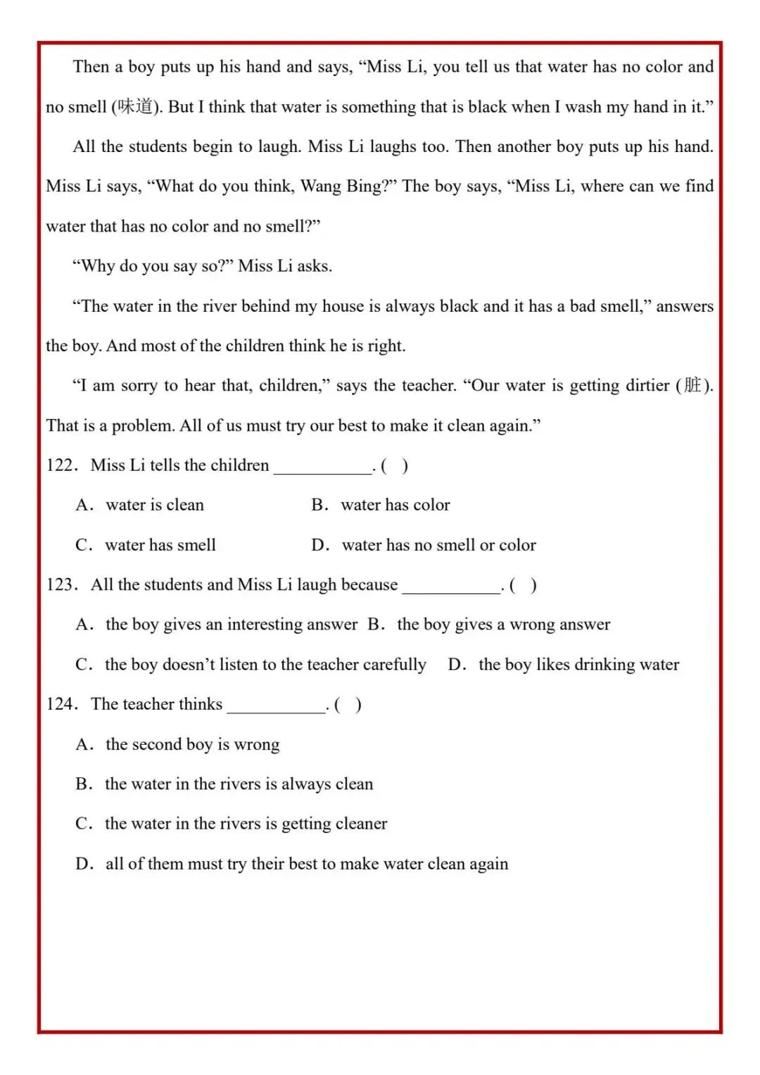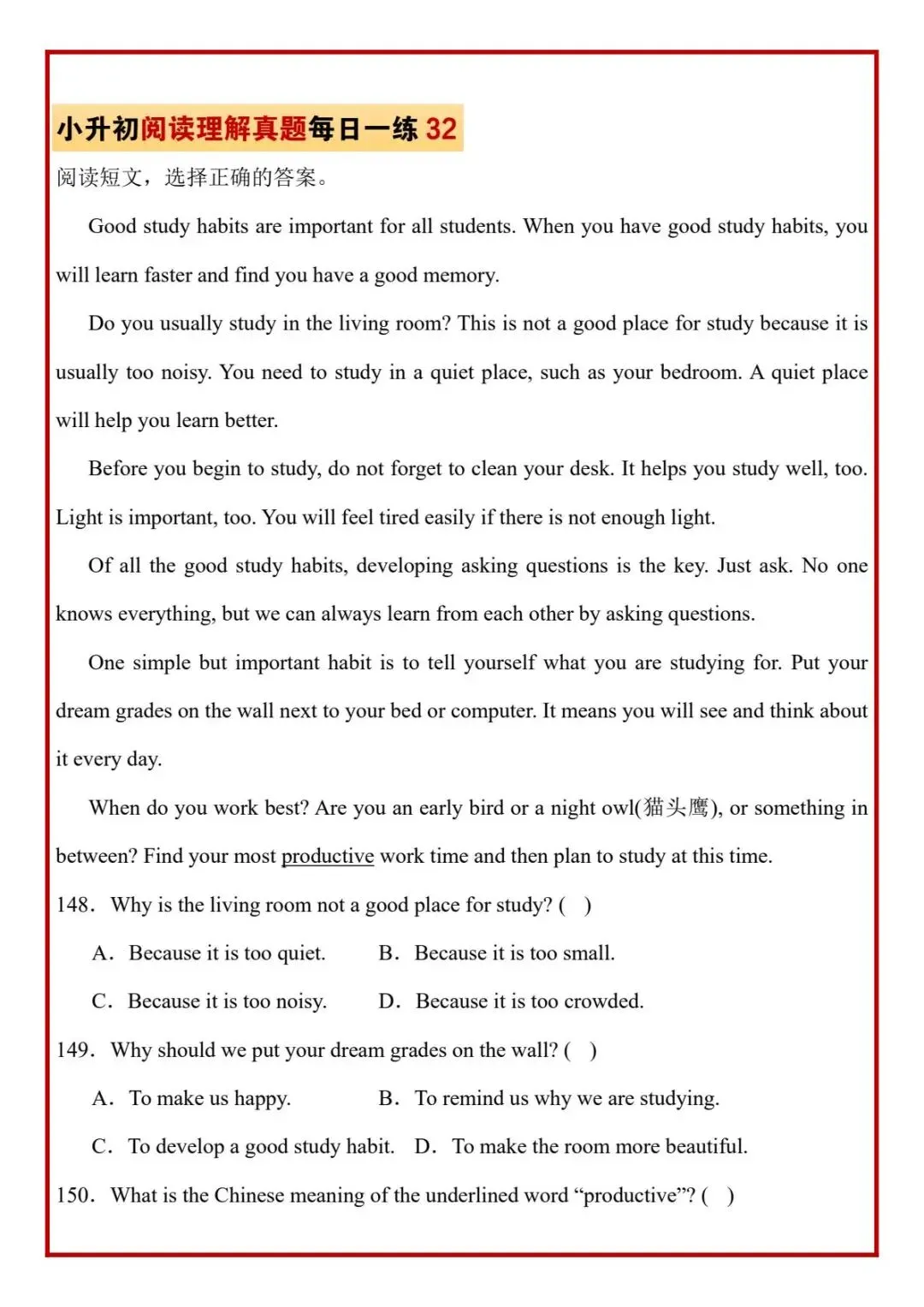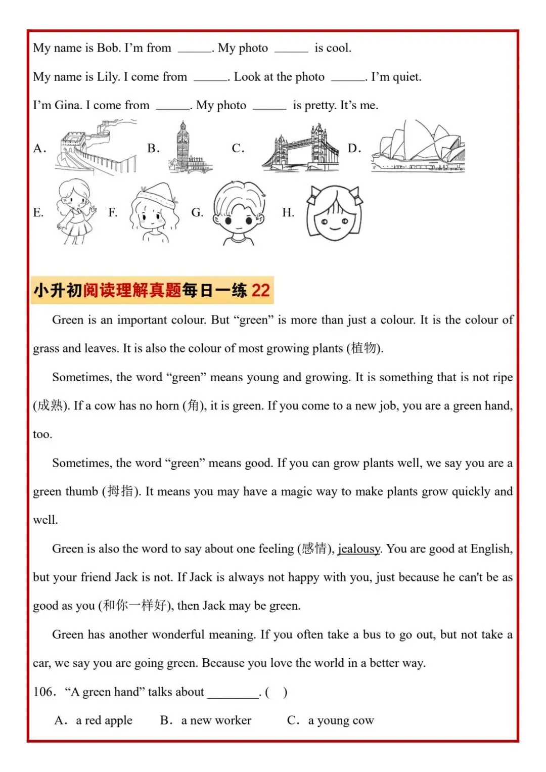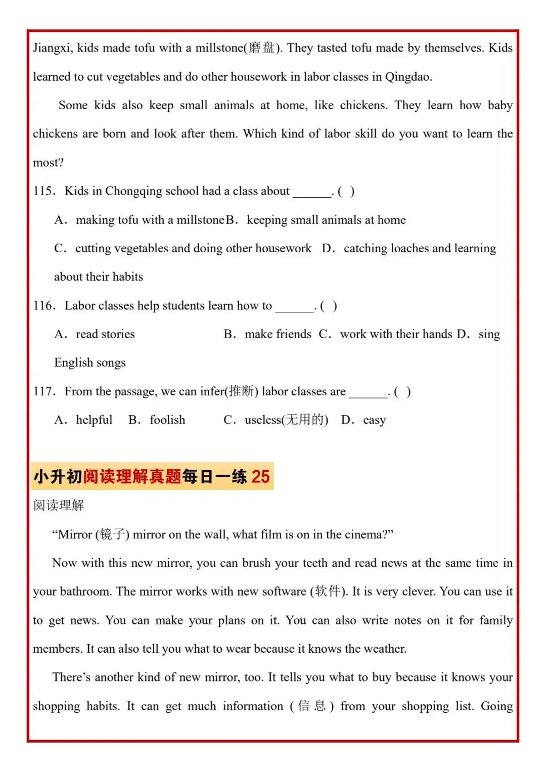 今日分享六年级下册英语人教版PEP版《小升初阅读理解真题每日一练题》,需要的家长抓紧打印出来,让孩子在每天练一练吧。