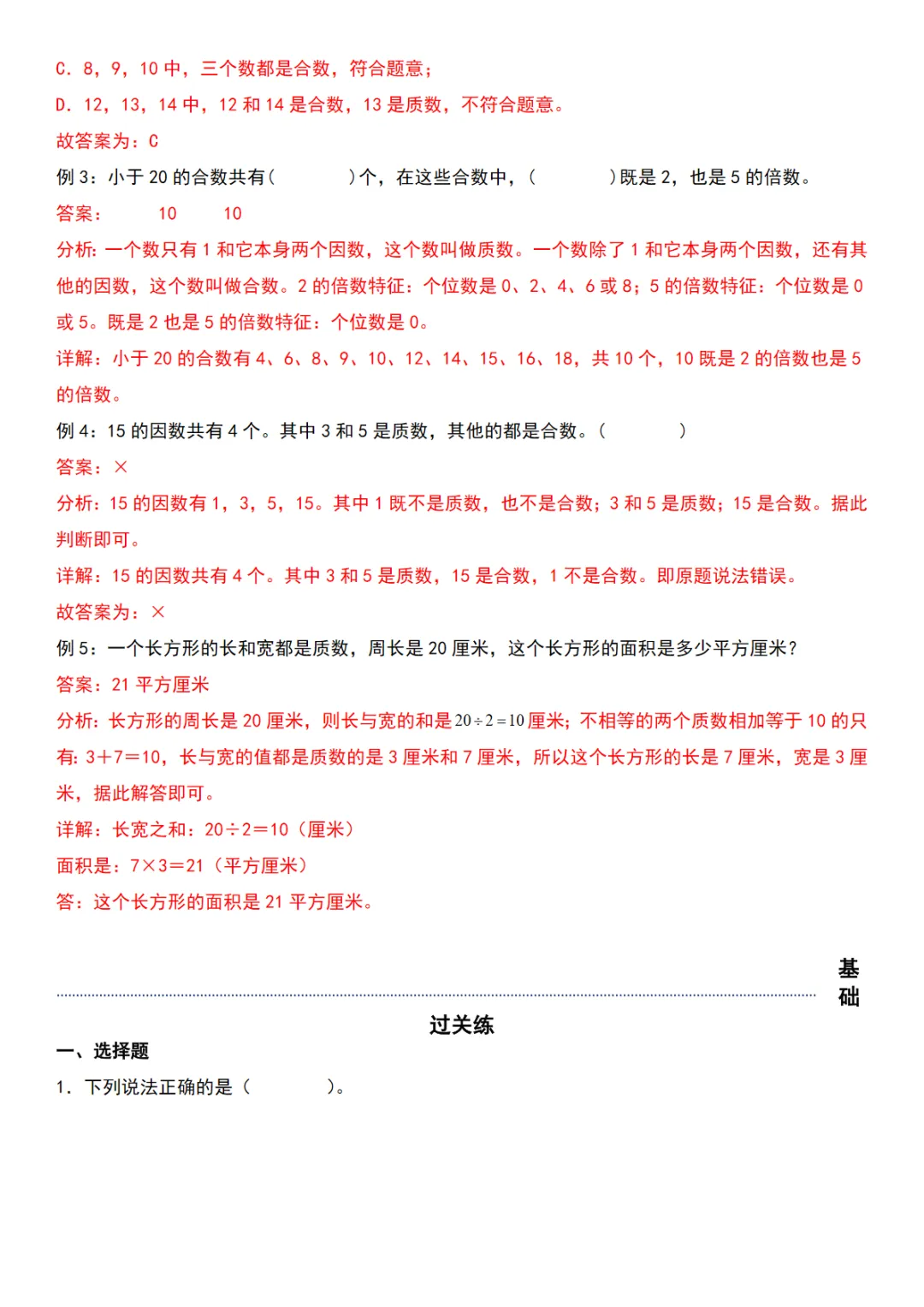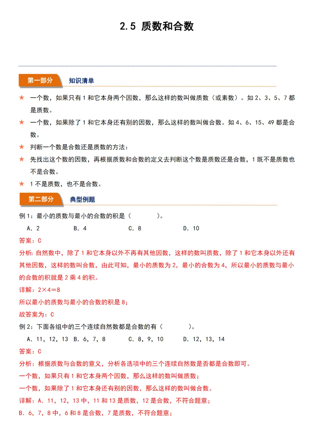【免费下载】2.5 质数和合数(分层作业)【人教】五下数学分层作业,可打印