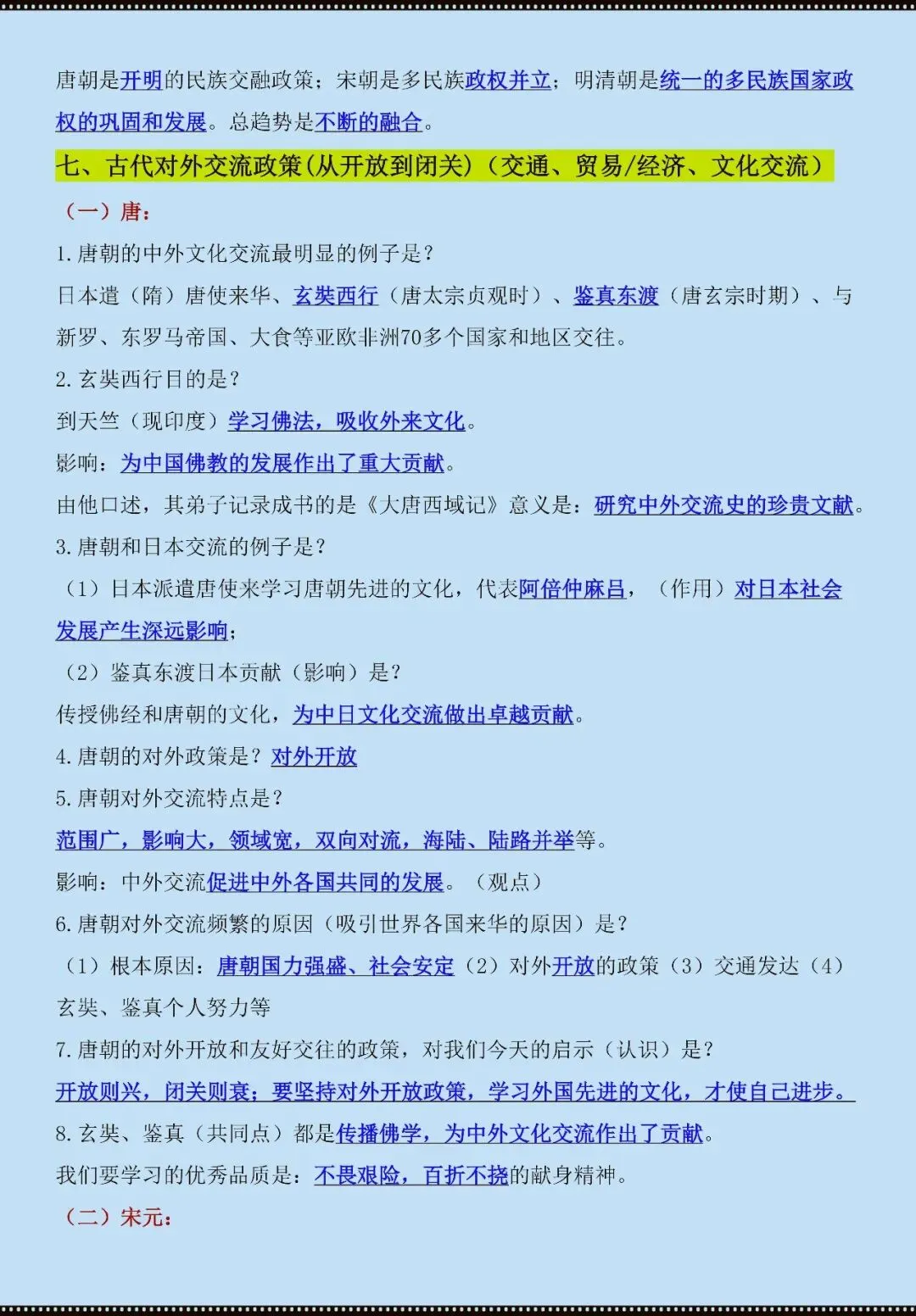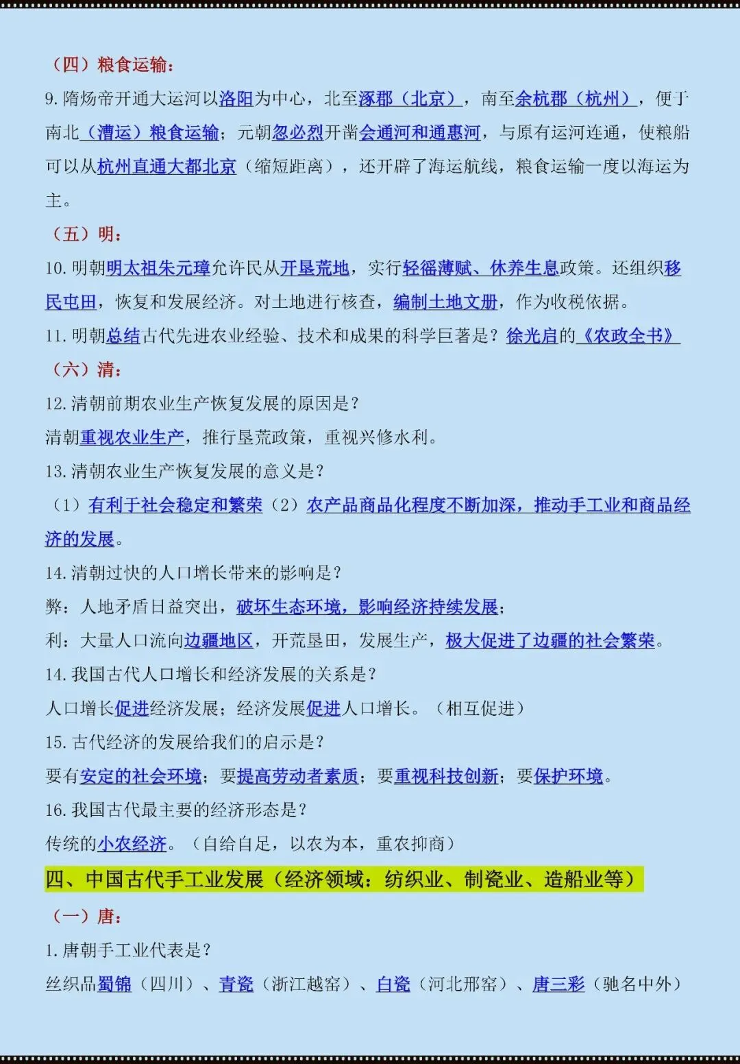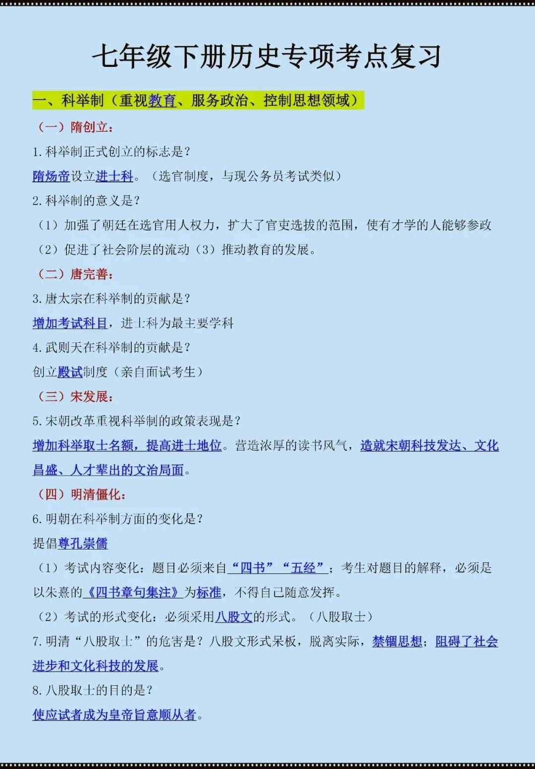 今天老师给大家整理了:七年级下册历史专考点复习(电子版可打印)