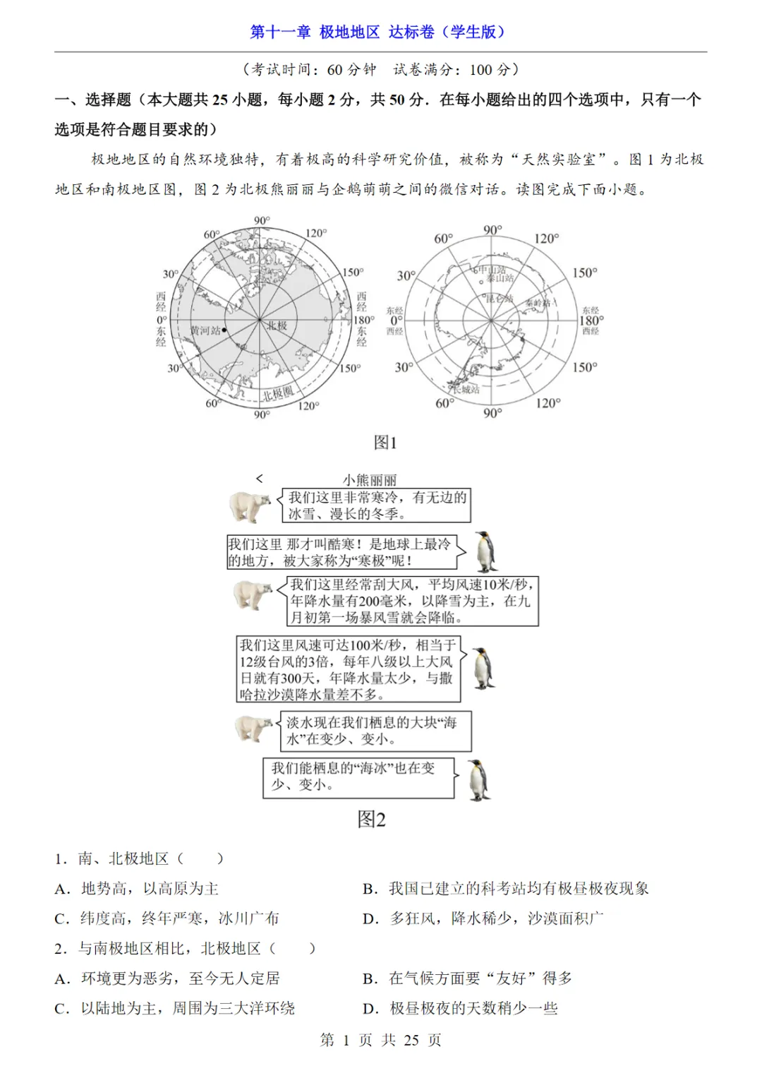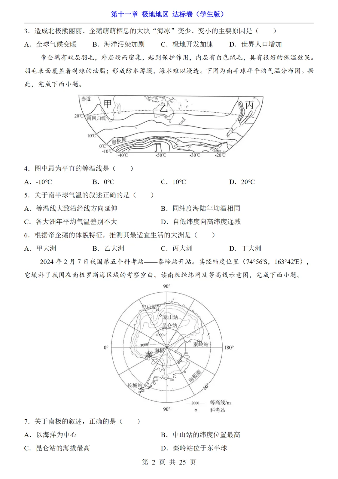 【免费下载】七年级(下)地理第11章极地地区 达标卷(人教版),PDF电子版,可打印,共25页,先保存,以免资源失效