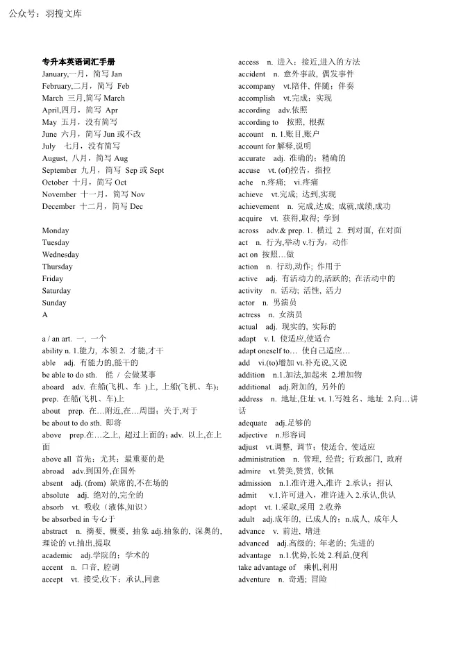 【PDF-按字母-无音标版】公共英语专升本3800个英语考纲单词 电子版试卷获取,后台回复:试卷