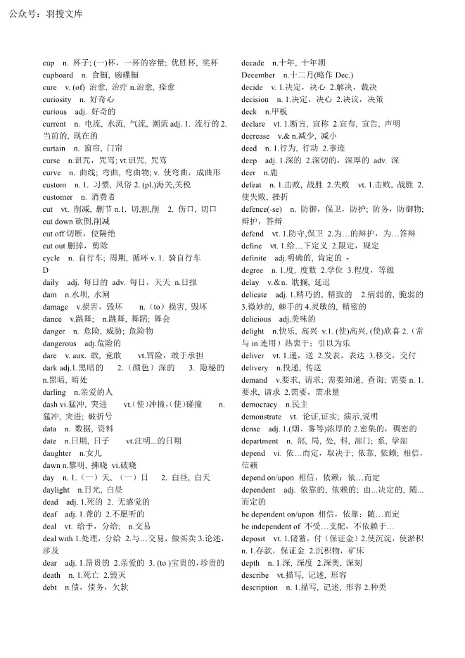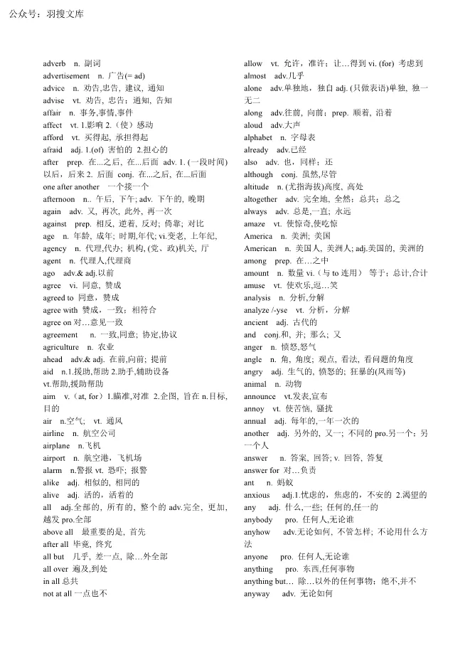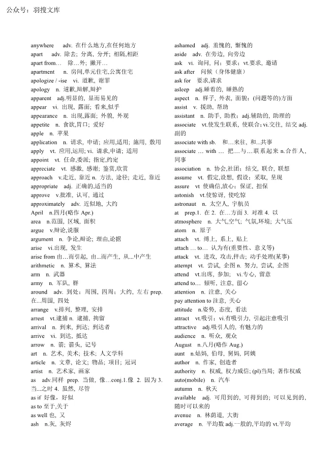 【PDF-按字母-无音标版】公共英语专升本3800个英语考纲单词【可下载】