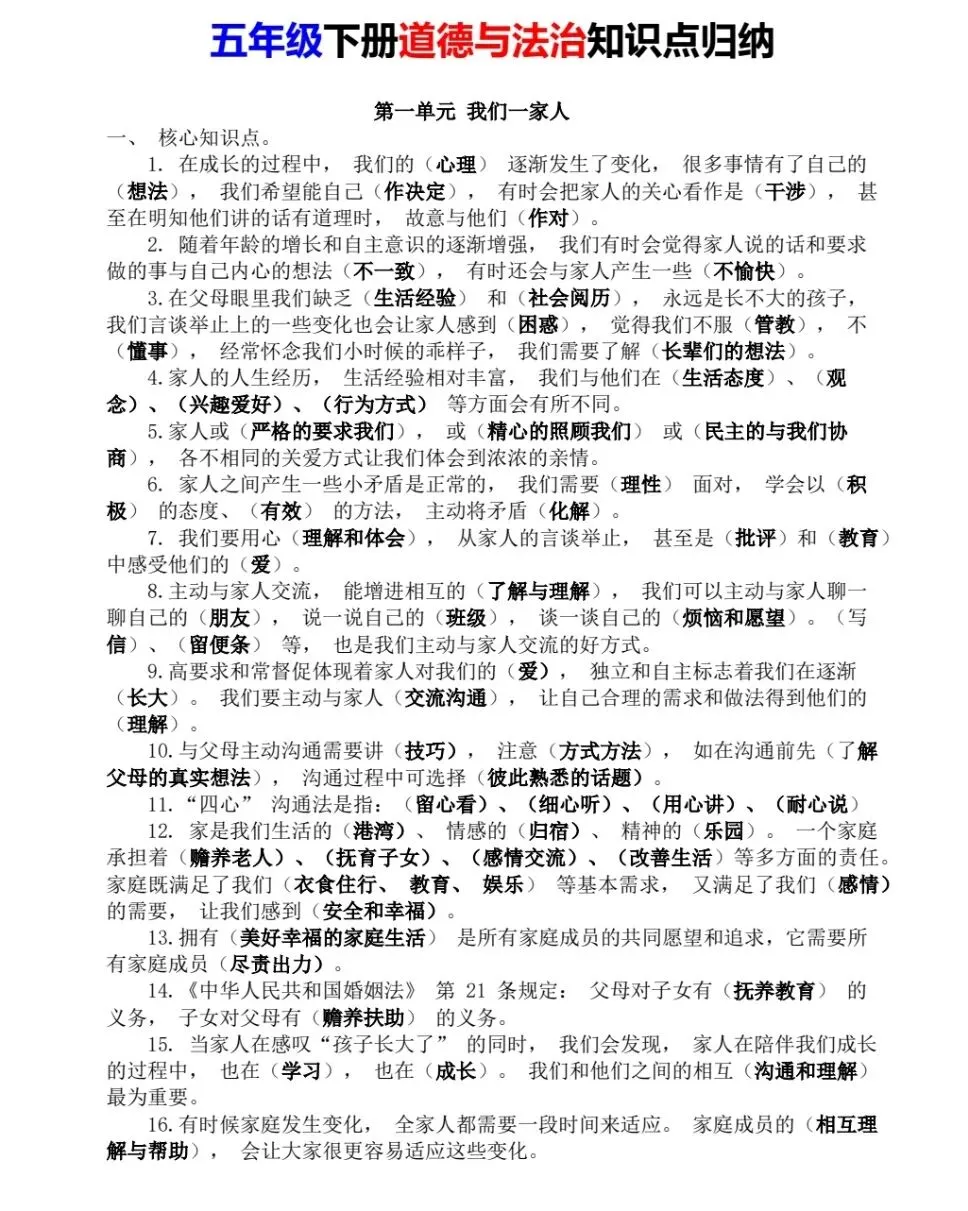 五(下)道德与法治《全册知识点汇总》电子版可下载打印