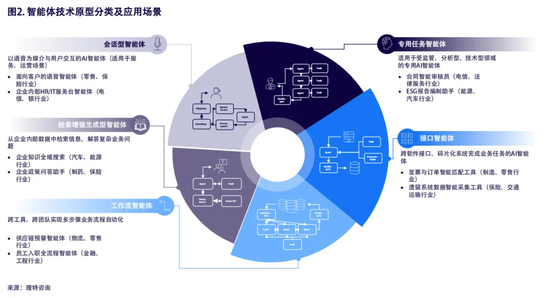 人工智能发展史上,首次出现了能够赋能企业全流程、而非仅单一业务环节的技术体系,这也是智能体技术原型逐步落地后的自然演进趋势(见图2)。