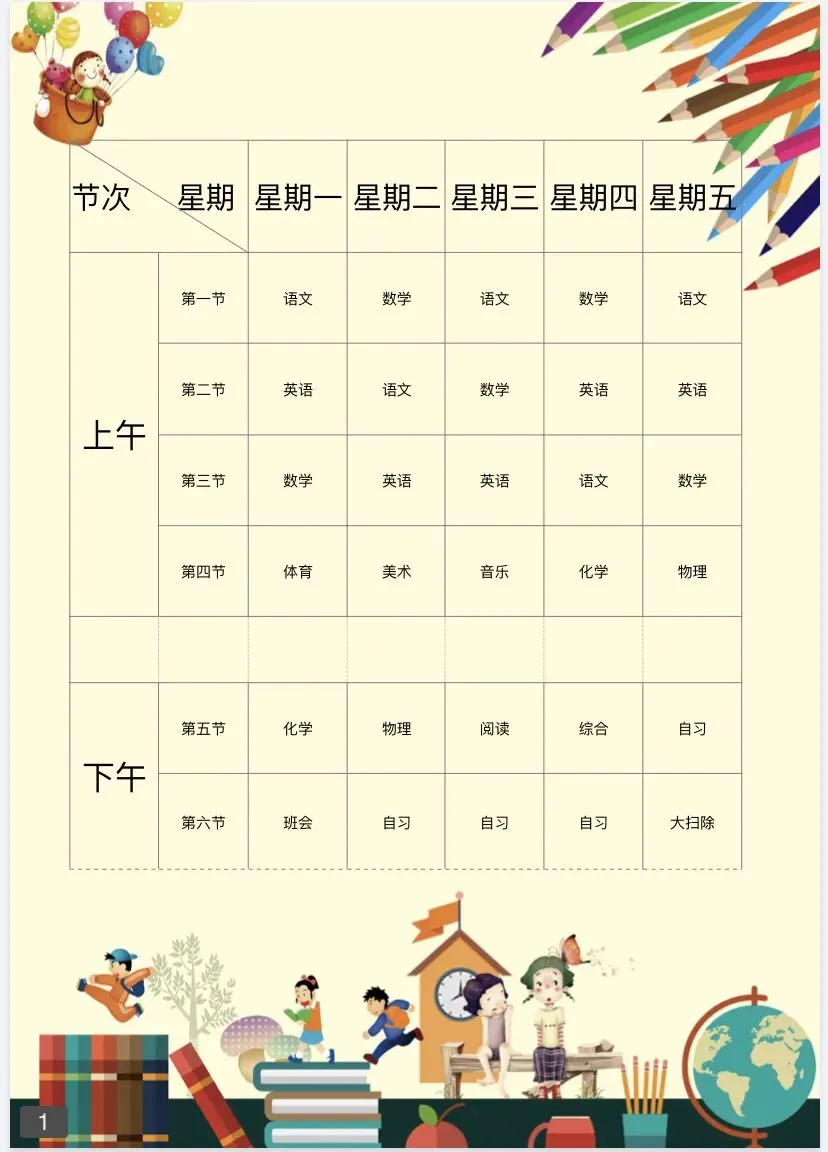 【免费保存】课程表(电子版可编辑)