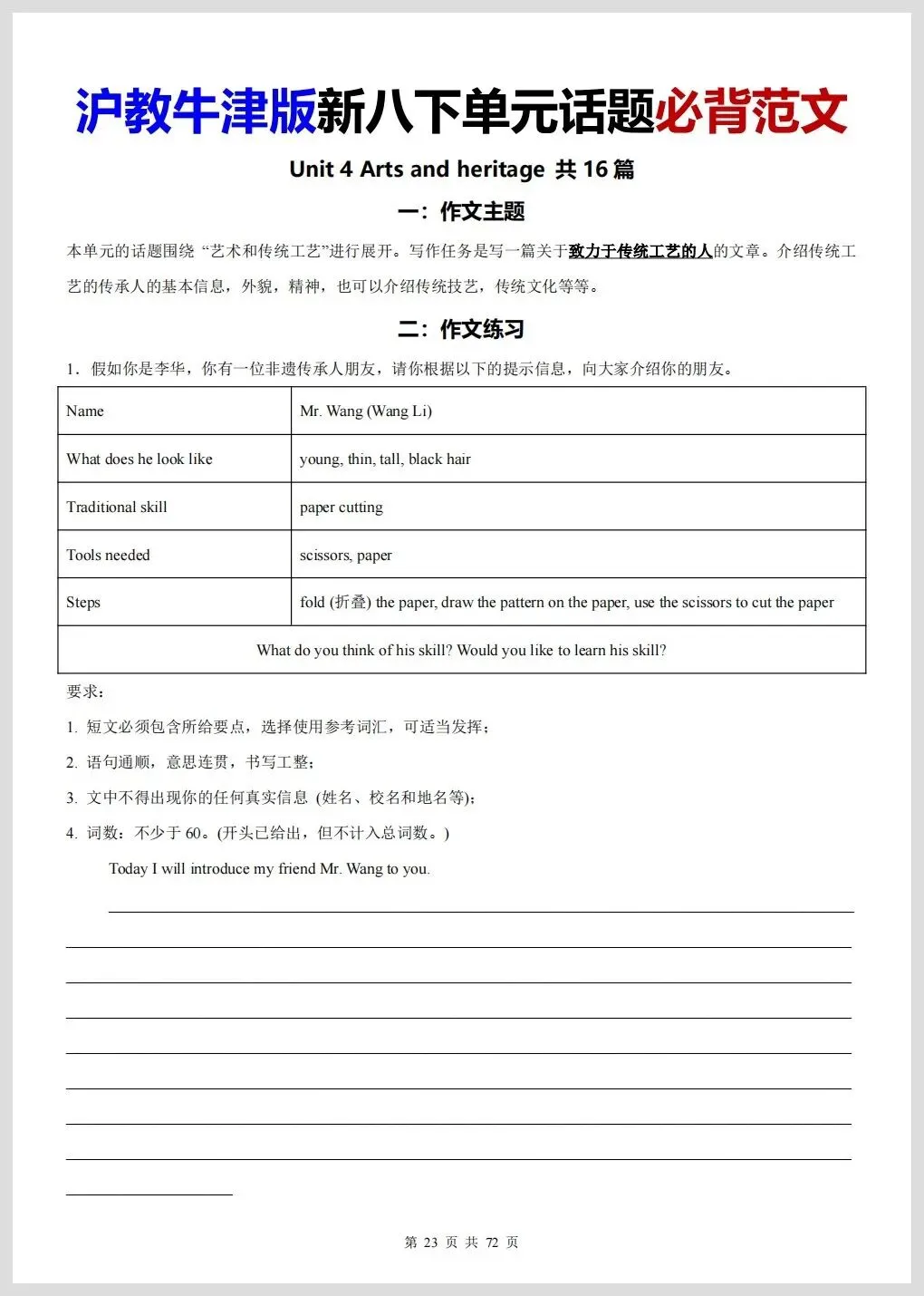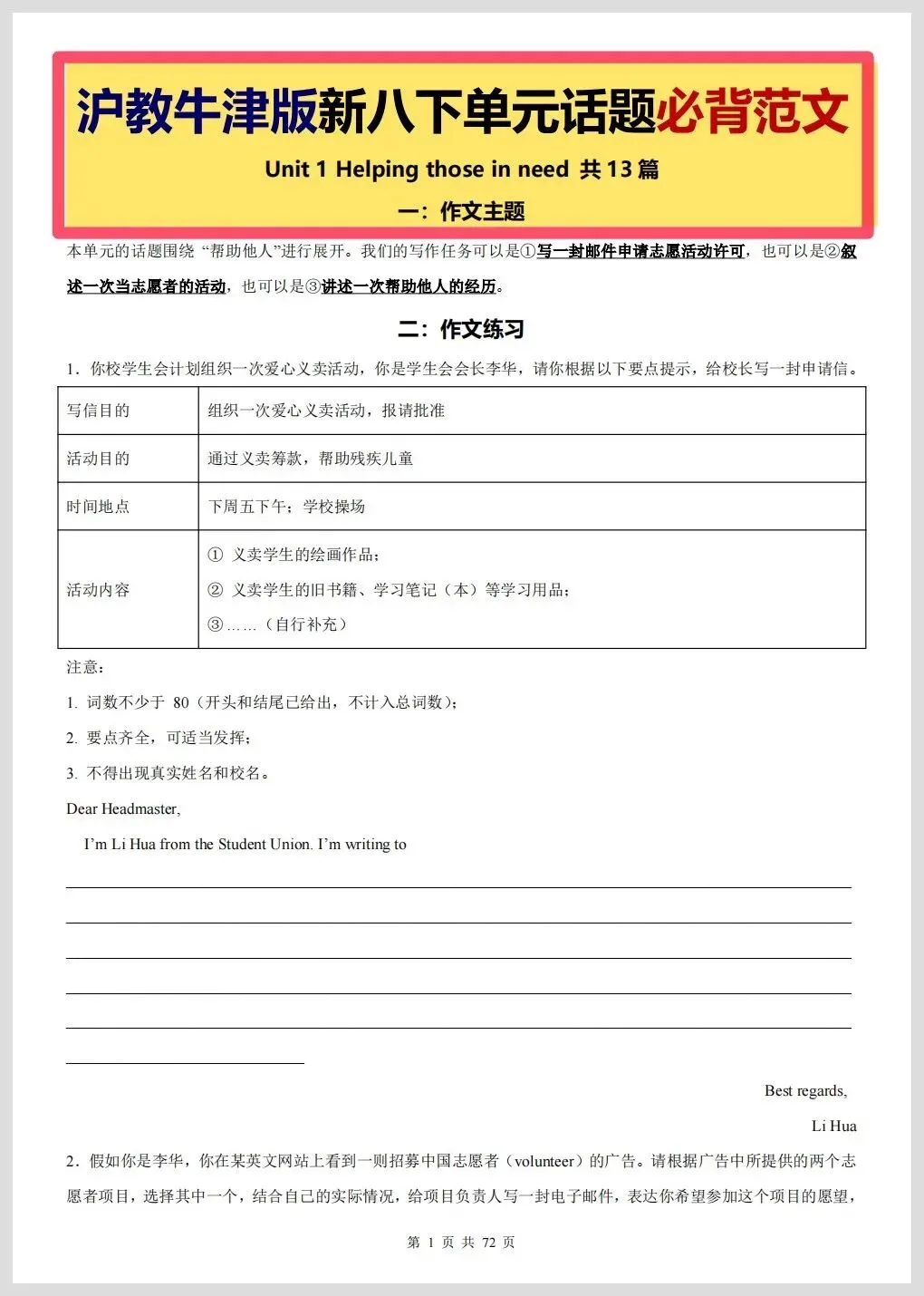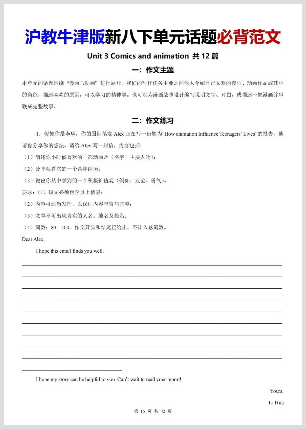 🟠全套共72页,从模板到范文,从思路到表达,一站式解决八年级下册英语写作难题。