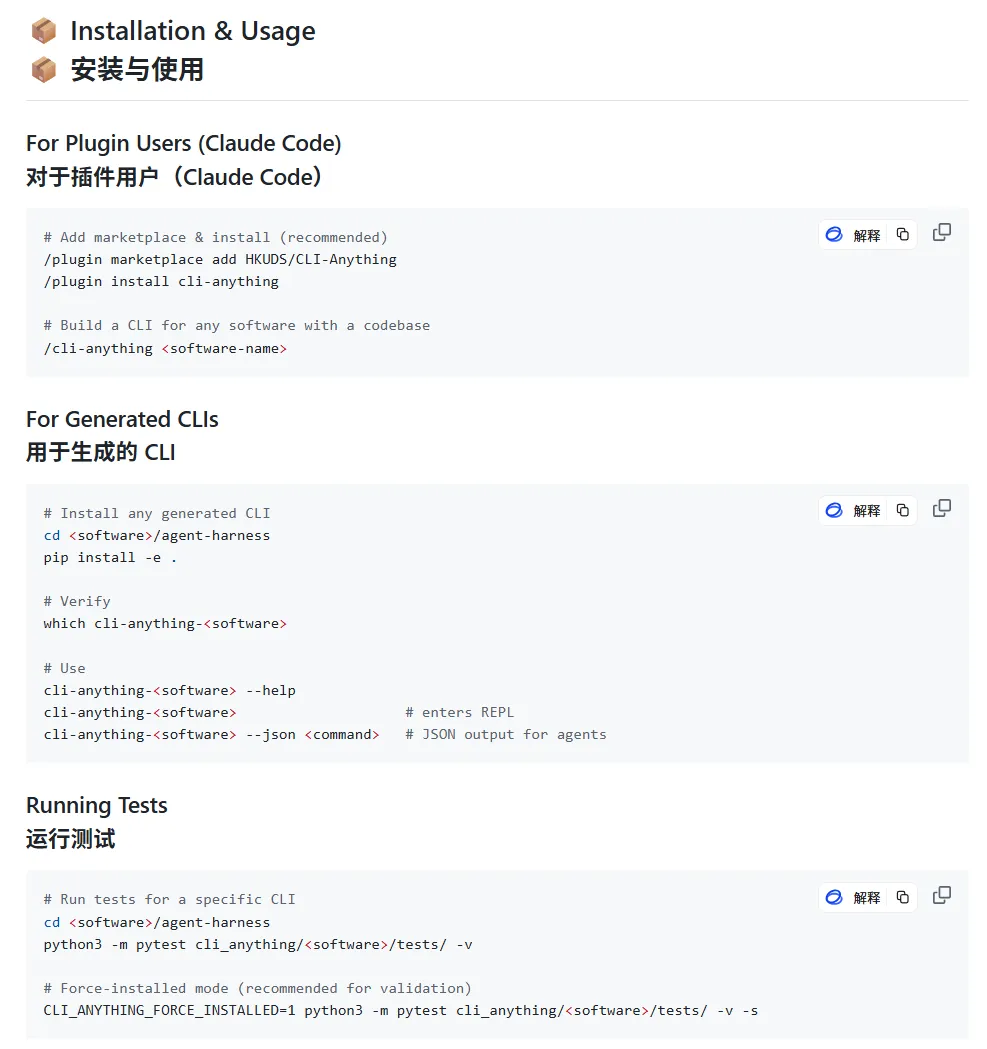 这里只是简单的举个例子,如果想要详细了解CLI-Anything 会做什么?CLI-Anything 如何是工作的?核心原理是什么?可以自行去访问Github地址,里面有很详细的介绍。