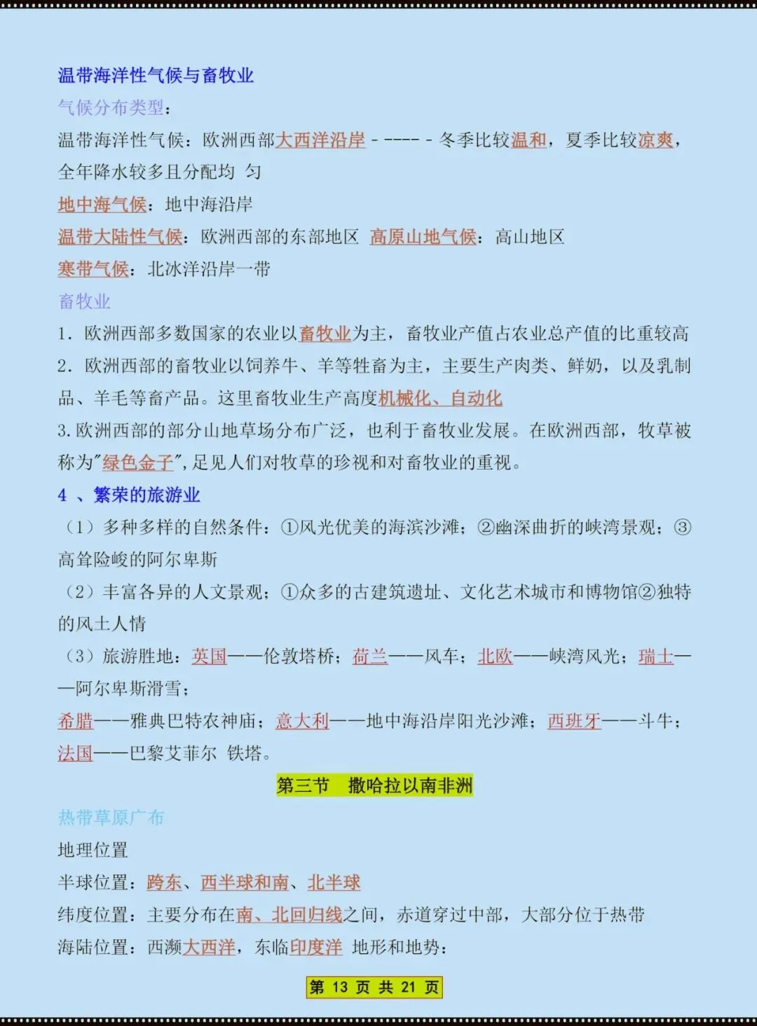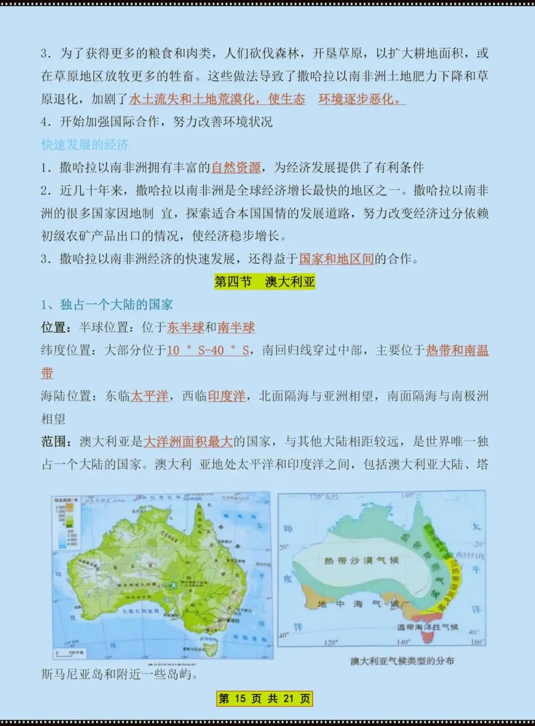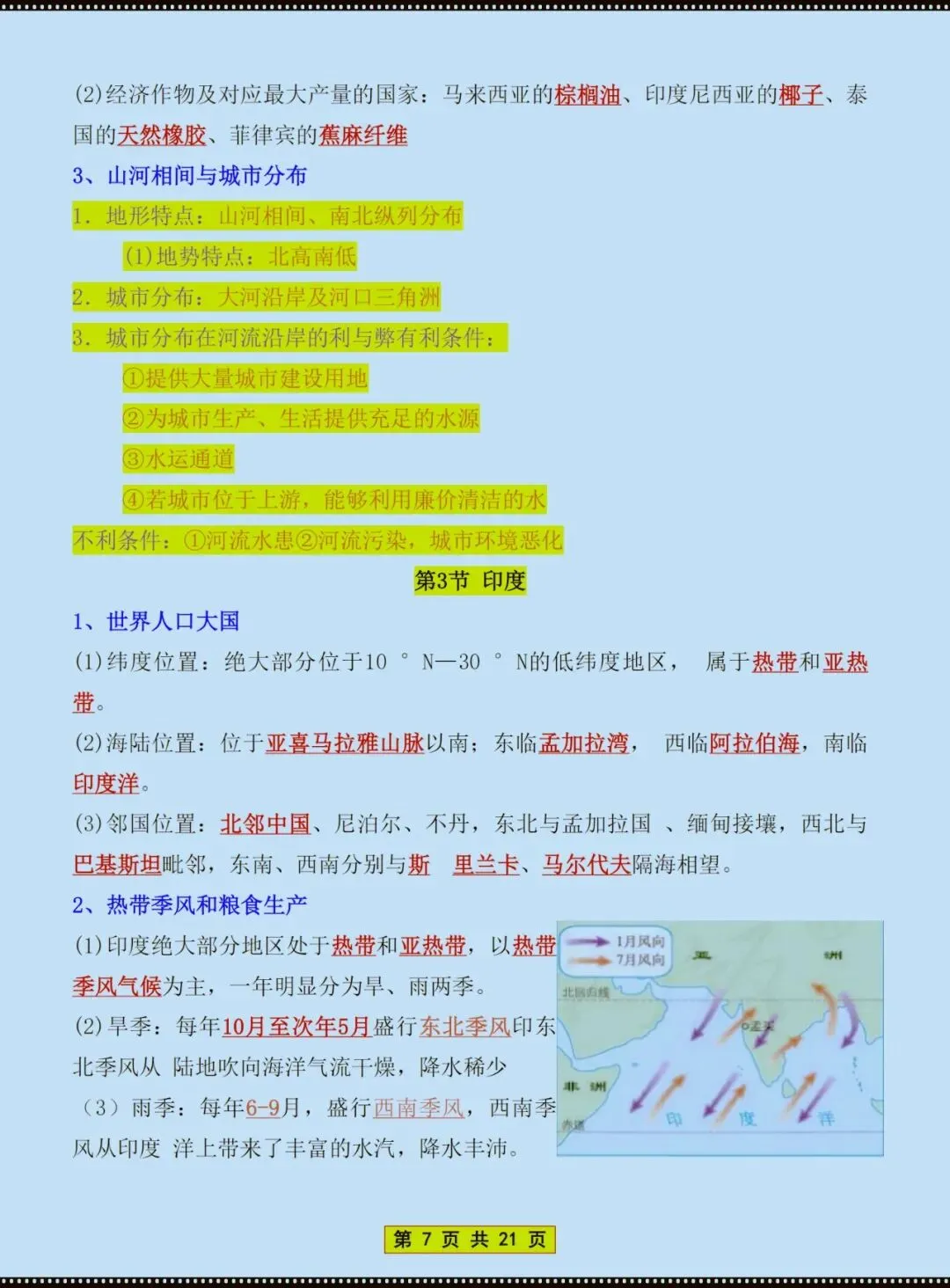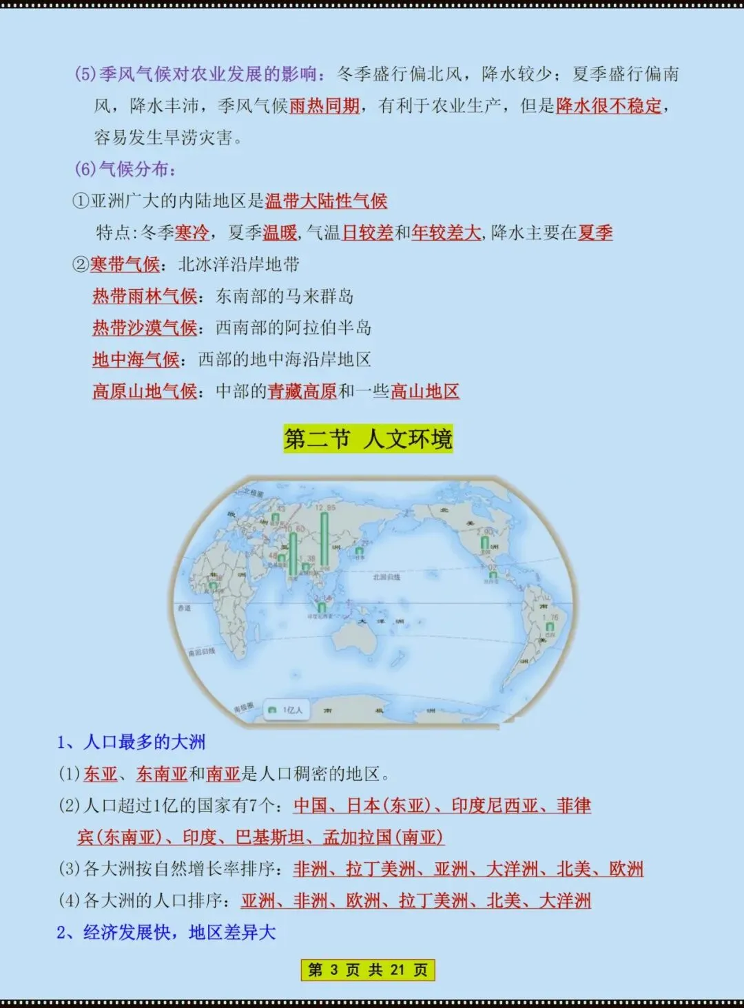 今天老师给大家整理了:七年级下册地理全册知识点清单(电子版可打印)