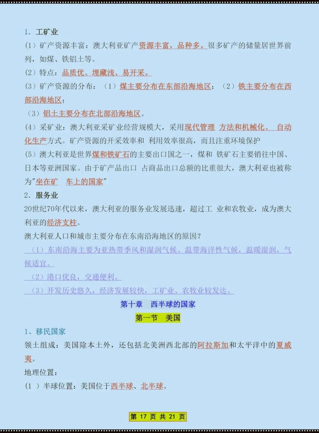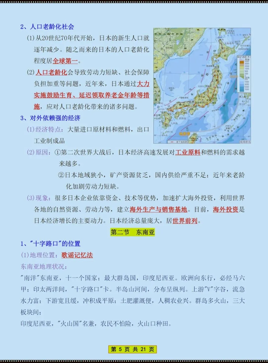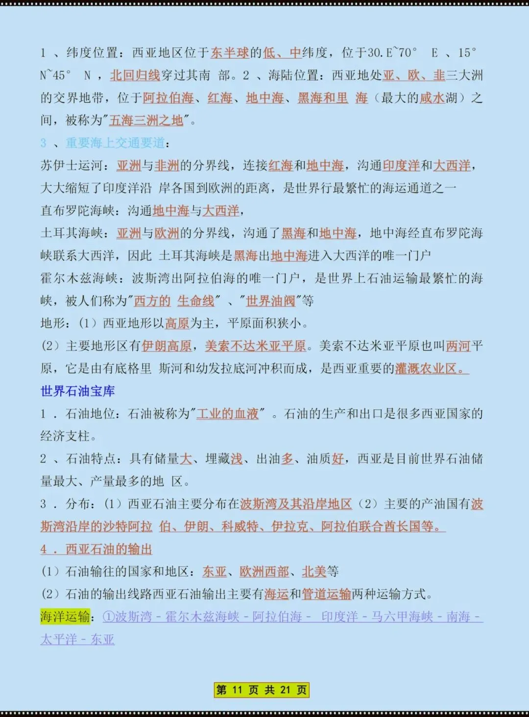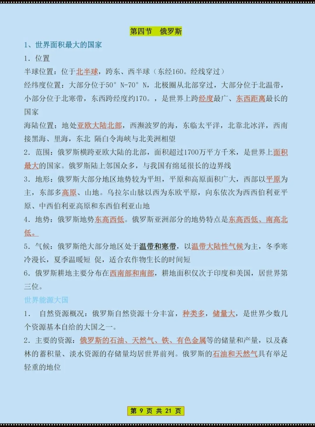 今天老师给大家整理了:七年级下册地理全册知识点清单(电子版可打印)