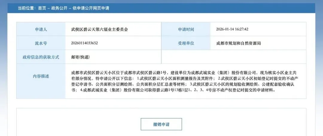 目前从产权登记处调取的资料显示产权人为:成都武城实业(集团)股份有限公司,即小区开发商。