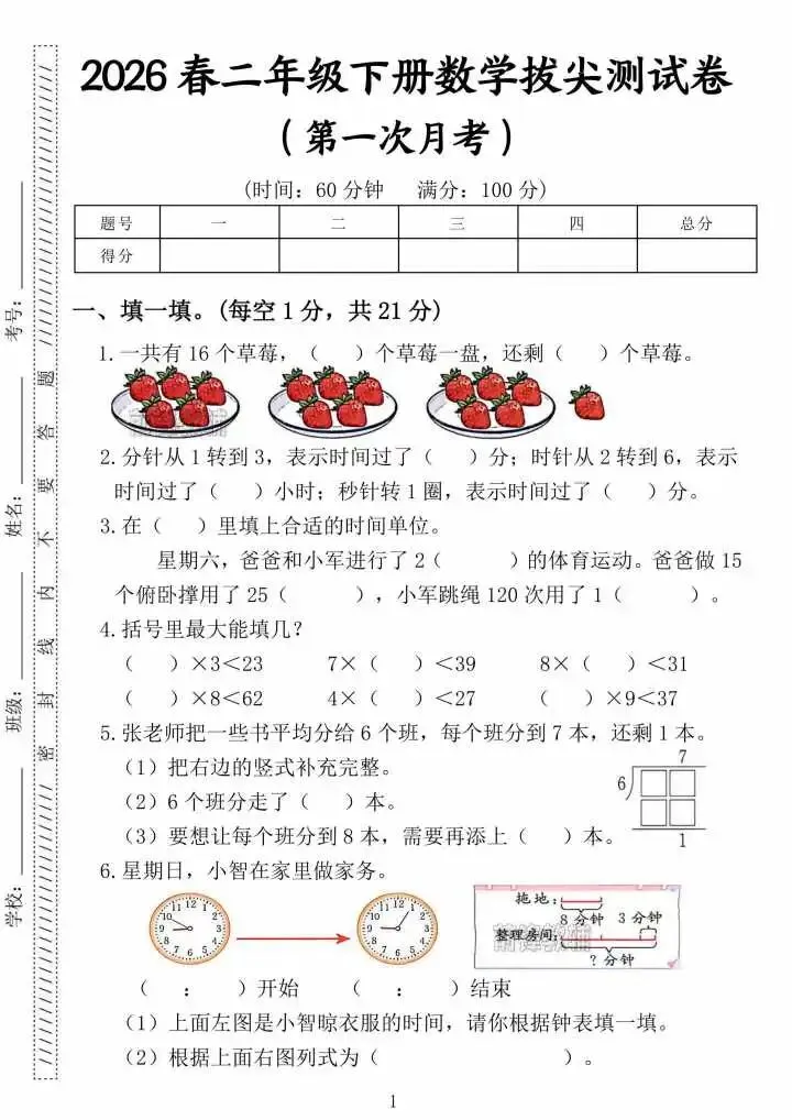 今天涵涵的学霸日记给大家分享的是26新版二年级下册数学第一次月考卷,第一次月考是孩子下册数学的“第一次正式检验”,别盲目刷题!这份紧扣教材重点的月考卷,帮孩子精准查漏补缺,稳拿基础分!