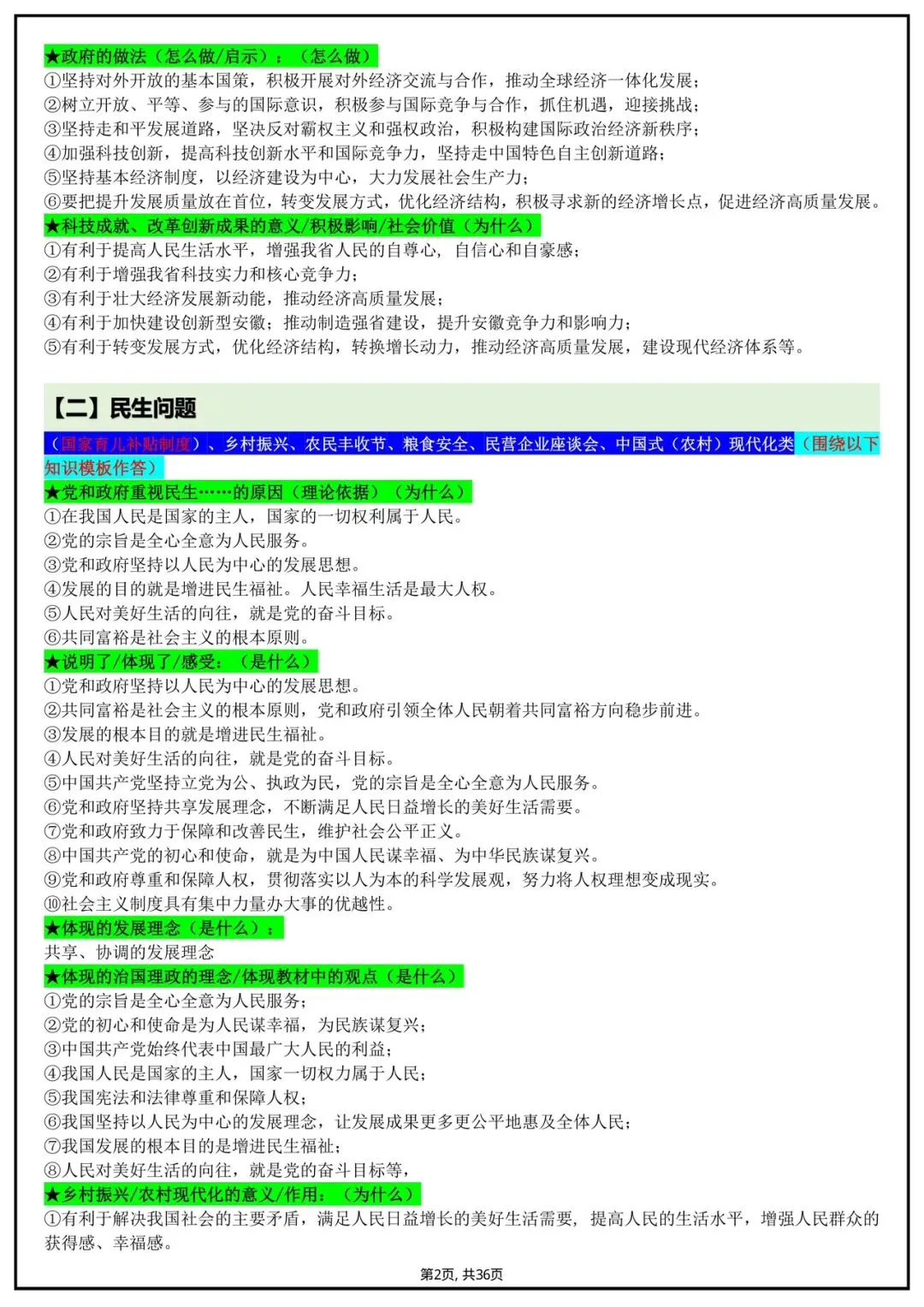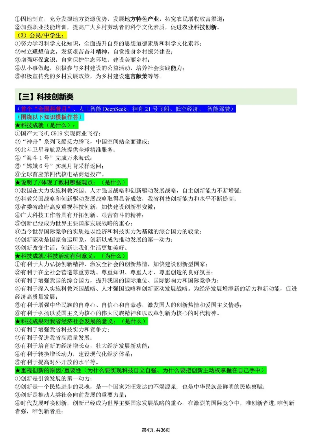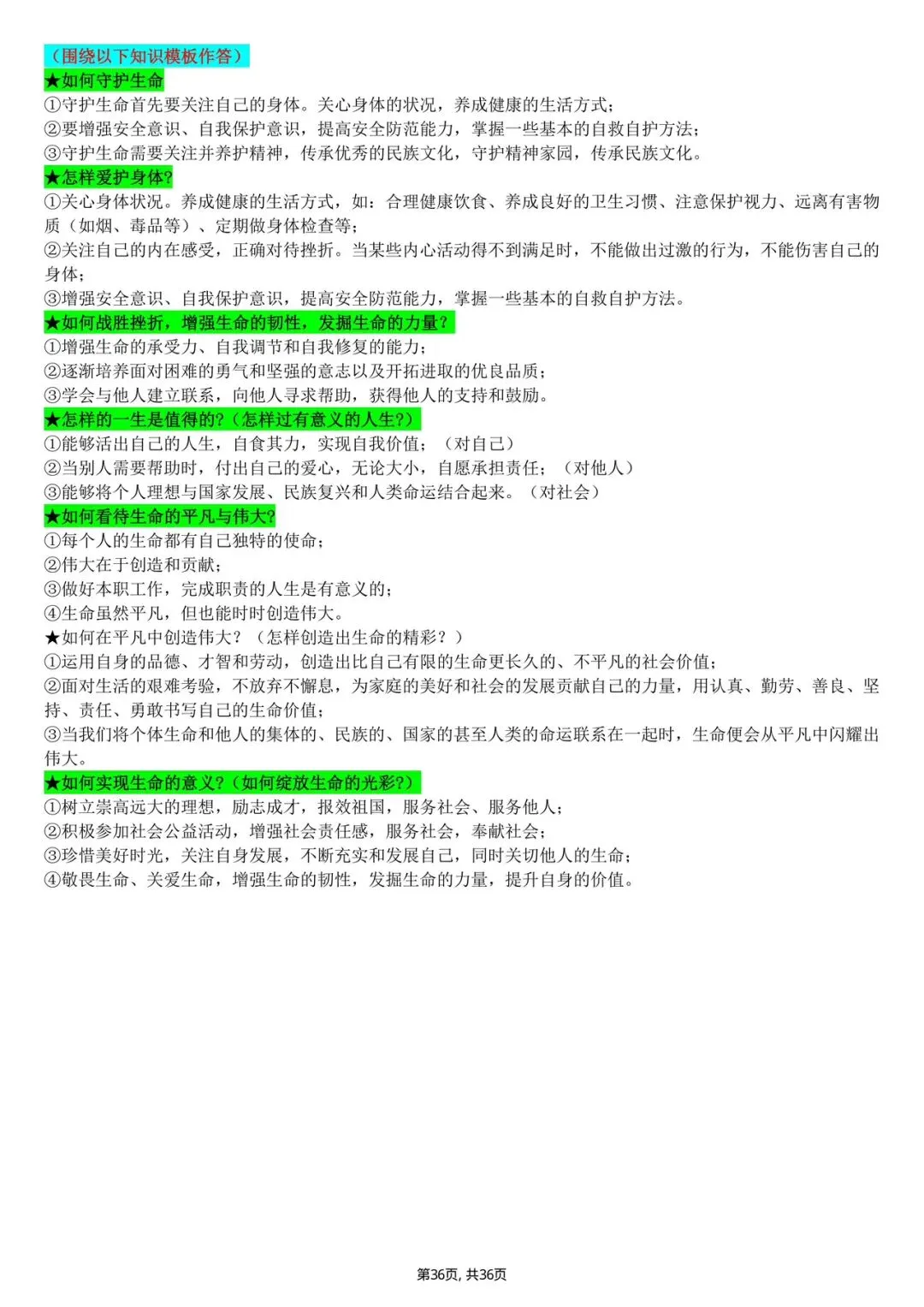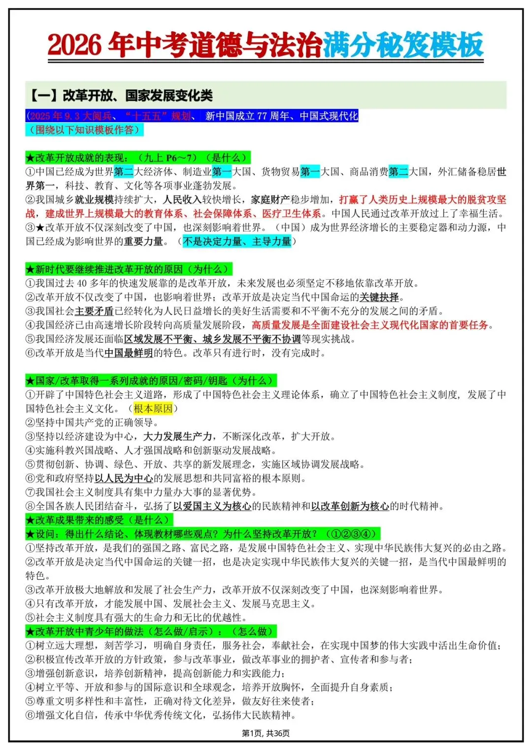 2026年中考道德与法治提分模板(电子版可打印)