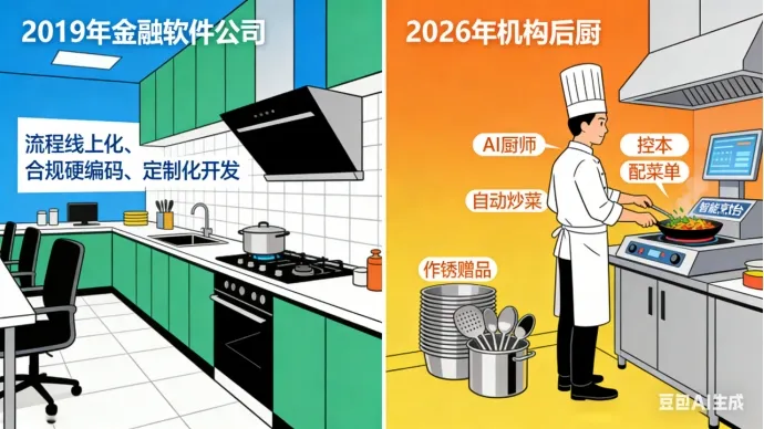 上周跟深圳科技园一个熬了9年的老大哥喝夜茶,他是做资管系统起家的,手里攥着十几家中小机构的客户,前几年每年营收稳在大几千万,小日子过得相当滋润。结果今年开年直接把团队砍了一半,酒过三巡红着眼跟我说:“刀哥,我搞了十几年金融 IT,现在 AI 一来,我突然发现,我连饭都不知道怎么吃了。”