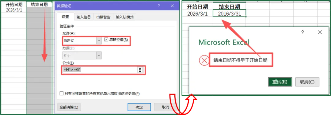 基础版内容参考:【Excel】数据录入不再乱!手机号、重复值、日期范围…校验规则基础篇!