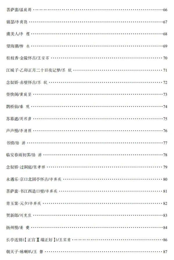 34、《永遇乐·京口北固亭怀古》(辛弃疾)千古江山,英雄无觅孙仲谋处。舞榭歌台,风流总被雨打风吹去。斜阳草树,寻常巷陌,人道寄奴曾住。想当年,金戈铁马,气吞万里如虎。元嘉草草,封狼居胥,赢得仓皇北顾。四十三年,望中犹记,烽火扬州路。可堪回首,佛狸祠下,一片神鸦社鼓。凭谁问:廉颇老矣,尚能饭否?