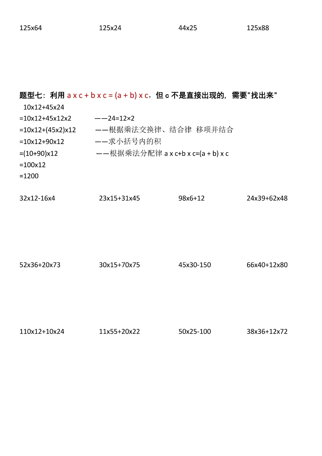 四年级下册数学(简便计算七大类型汇总),电子版可下载可打印