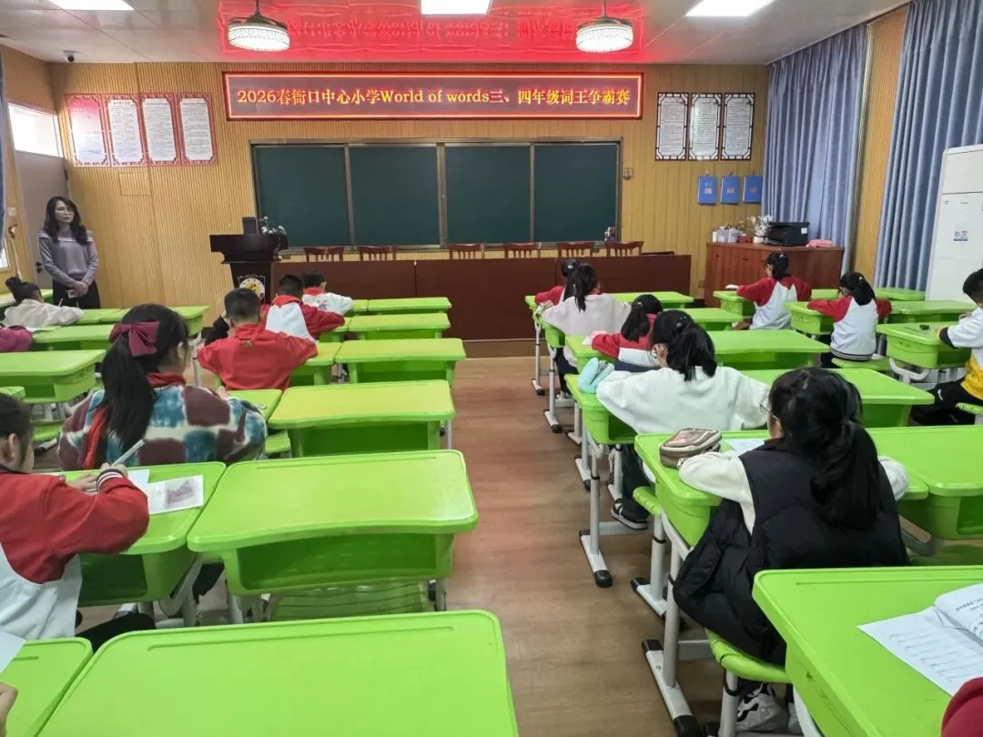 为落实义务教育英语课程标准要求,夯实三、四年级学生英语词汇基础,激发学生英语学习兴趣,营造浓厚的校园英语学习氛围,2026 年 3 月 24 日下午,衙口中心小学三、四年级以 “World of Words” 为主题开展英语 “词王争霸赛” 。来自各班级的选手齐聚赛场,展开了一场精彩的词汇比拼。