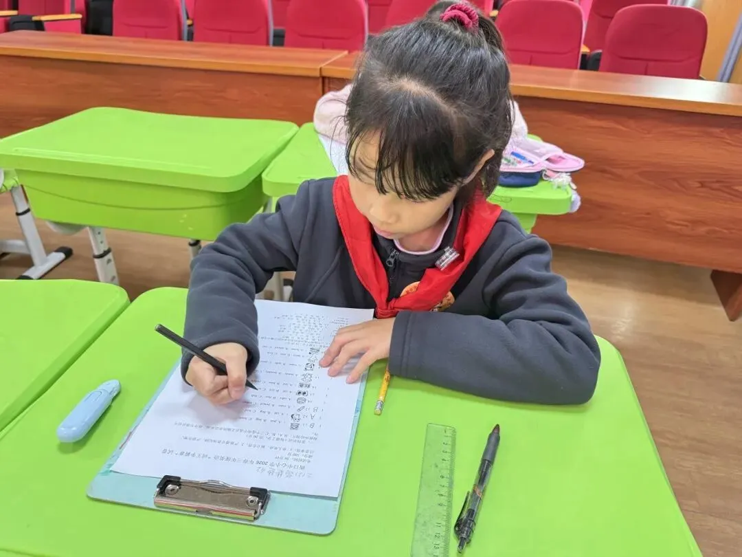 比赛过程中,选手们全神贯注、沉着答题,认真书写每一个单词,仔细完成每一道题目,赛场之上只听见笔尖划过纸张的沙沙声响,充分展现了良好的学习素养和扎实的词汇功底。
