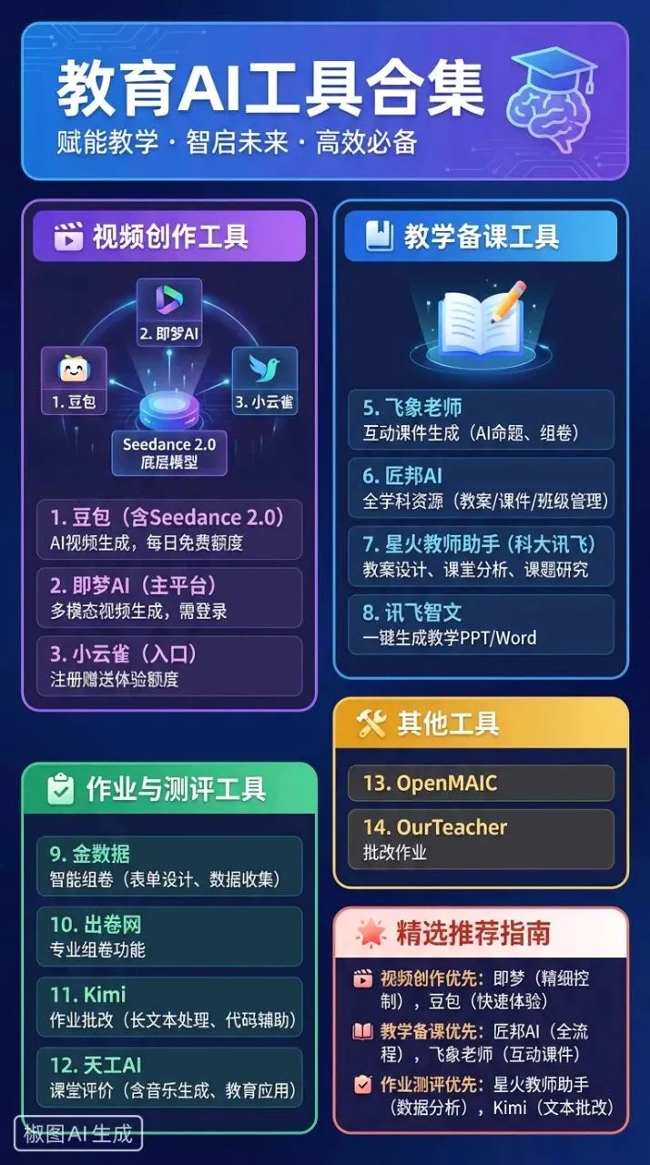 还在为做教学视频、设计教案、组卷批改头疼?这份教育专属AI工具清单请收好!覆盖视频创作、教学备课、作业测评、教研分析四大核心场景,每款工具标注精准功能+官方网址,新手也能直接上手,赶紧看看吧!