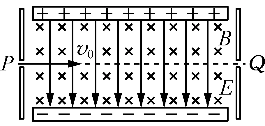 A. 图甲中,只有速度为v0=EB的带电粒子从P 射入,才能做匀速直线运动从Q 射出
