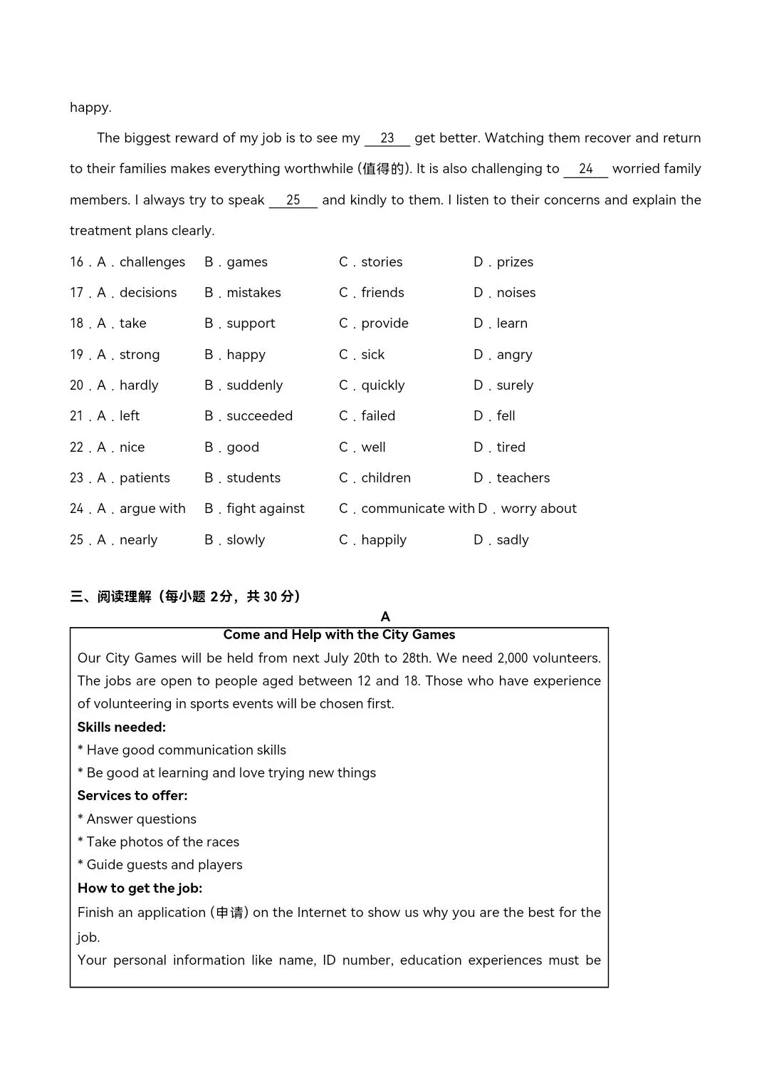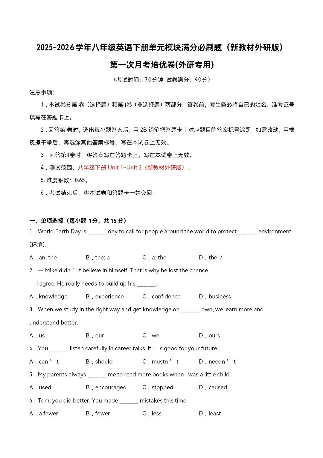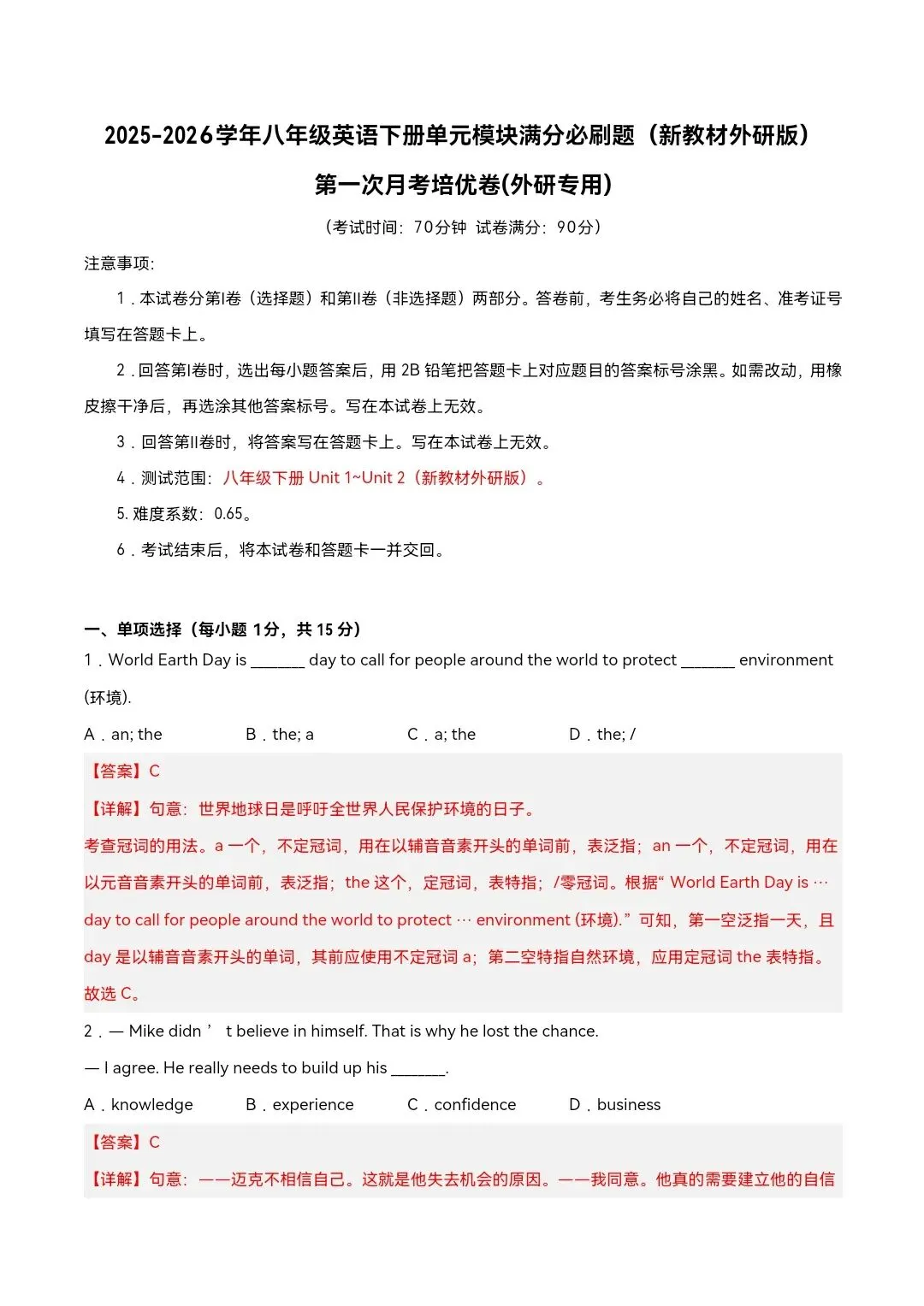 2026年外研版八年级下册英语《第一次月考试卷》培优卷,附详细解析版,完整电子版可下载