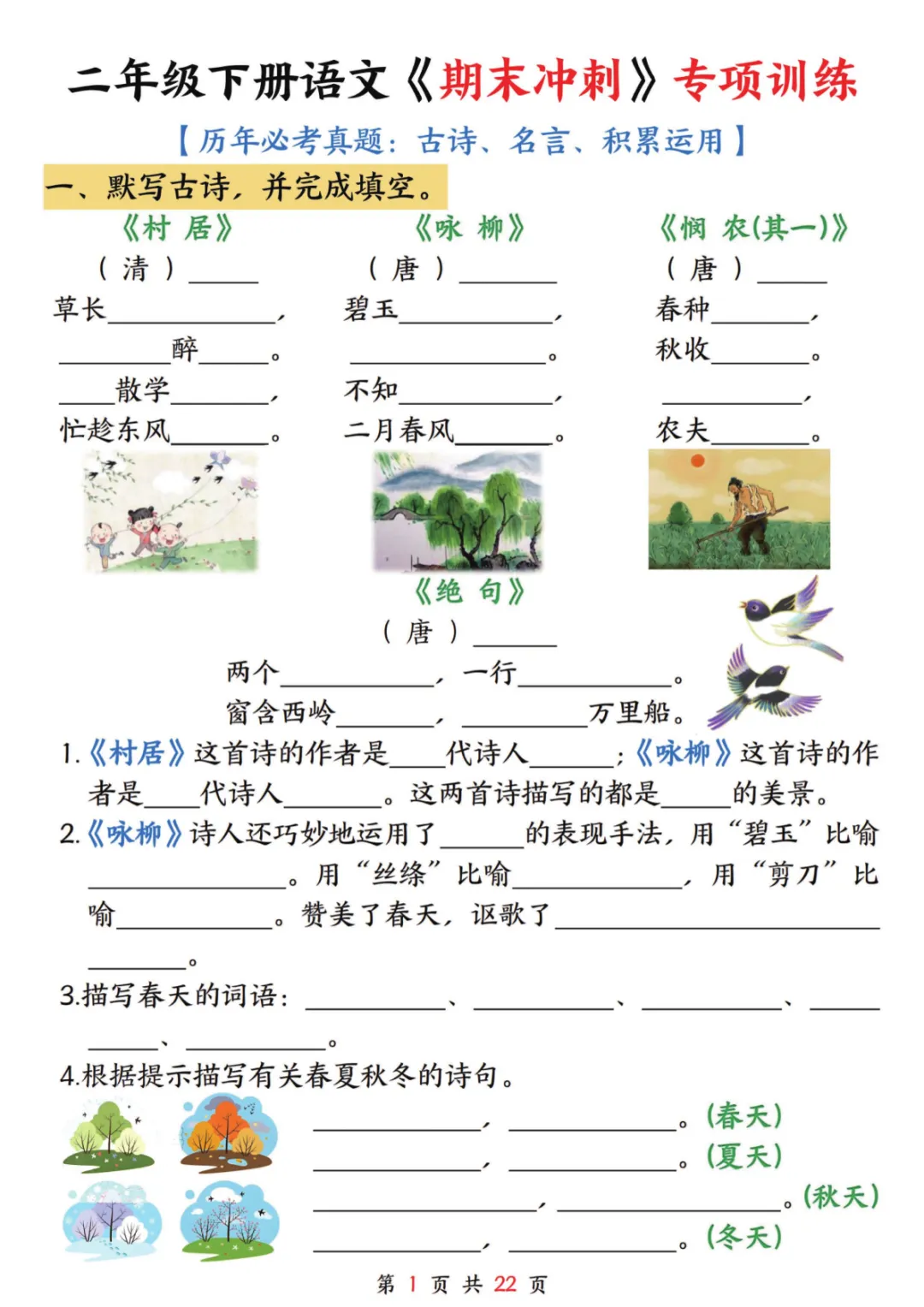 【免费下载】二年级(下)语文 《期末冲刺》专项训练,PDF电子版,可打印