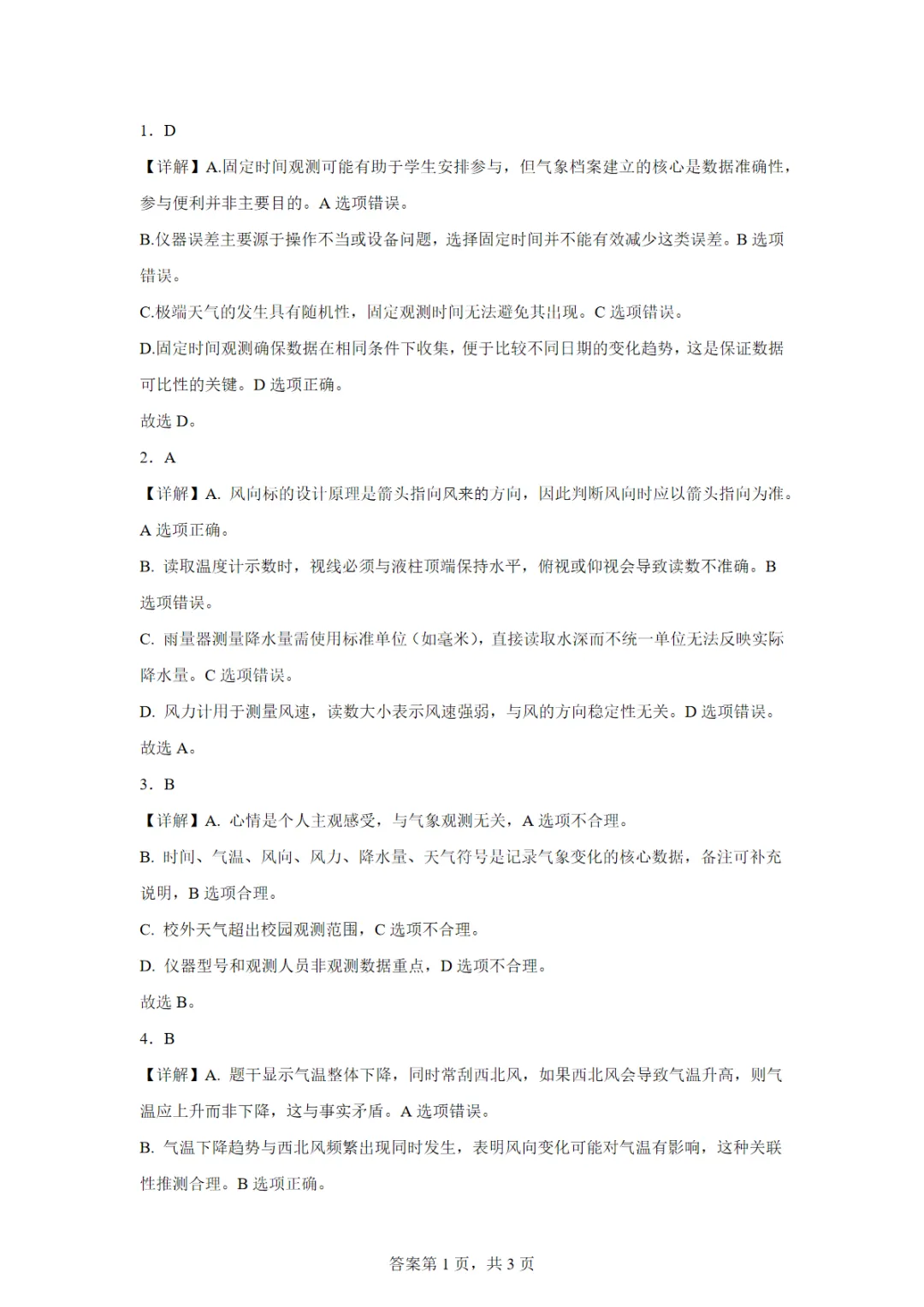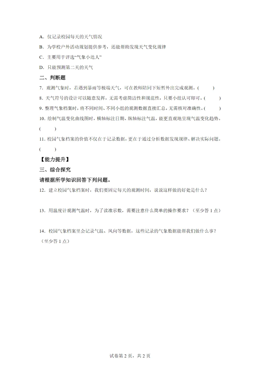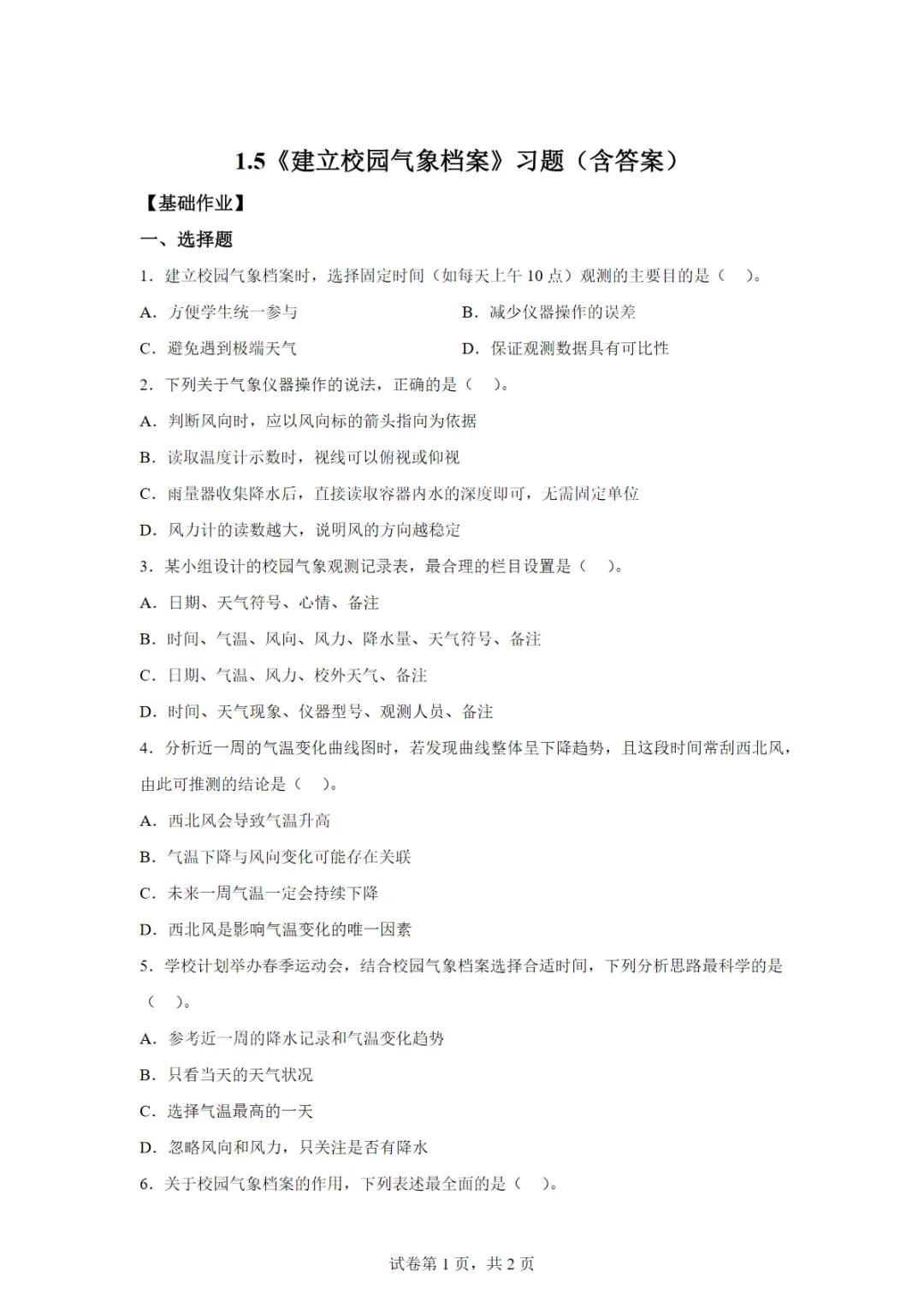【高清电子版】1.5 建立校园气象档案(分层作业)科学青岛版五四制三年级下册(新教材)