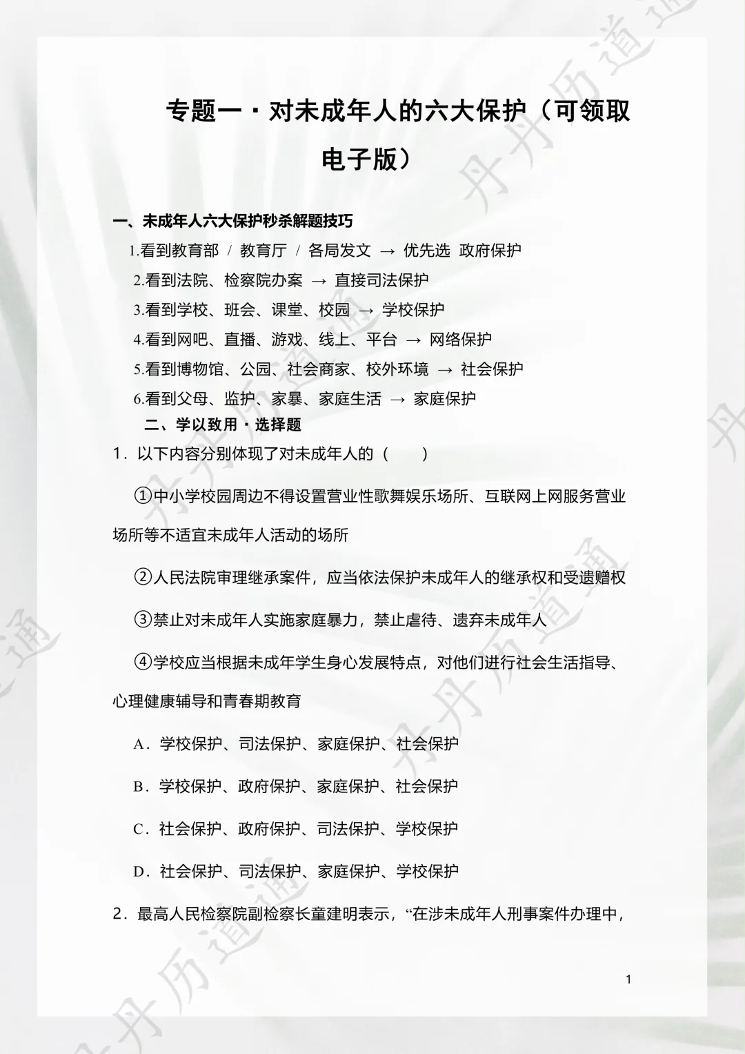 中考道法·专题核心选择题练习一(可领取电子版) 点击蓝字 关注我们 实战资料分享,助力孩子中考提分 本期还给家长、同学们带来了专题选择题练习,是丹丹老师在给自己的同学们上课中用到的练习题,这些练习题是考试中常考的题目,十分具有代表性,吃透这些题,同学们对知识点的把握会更加牢固,对应得分能力也会得到进一步加强! 普通资料让孩子越背越累; 丹丹老师的资料,经过教学实战检验,让孩子越背越稳。 添加丹丹老师 免费领取本文资料