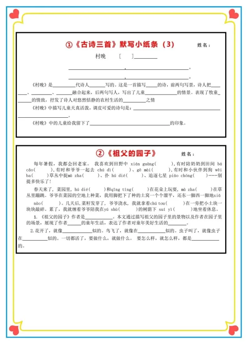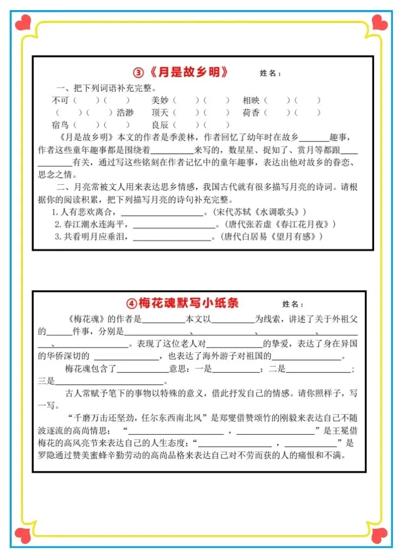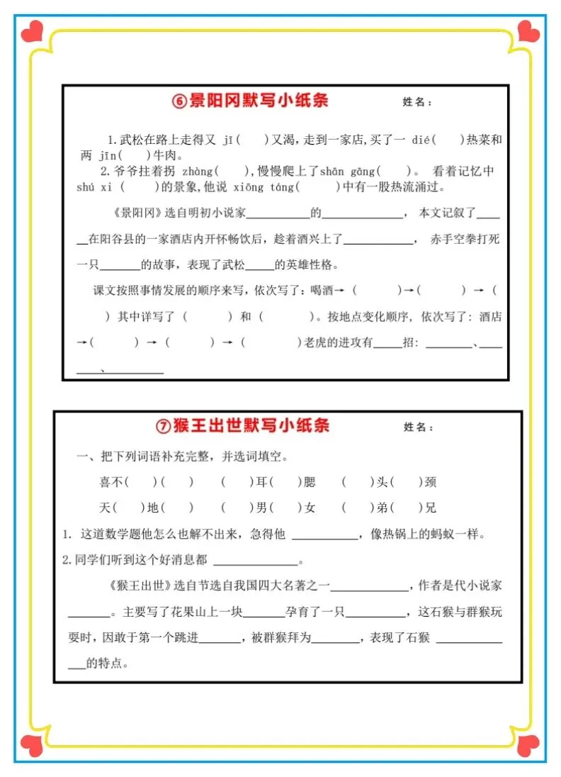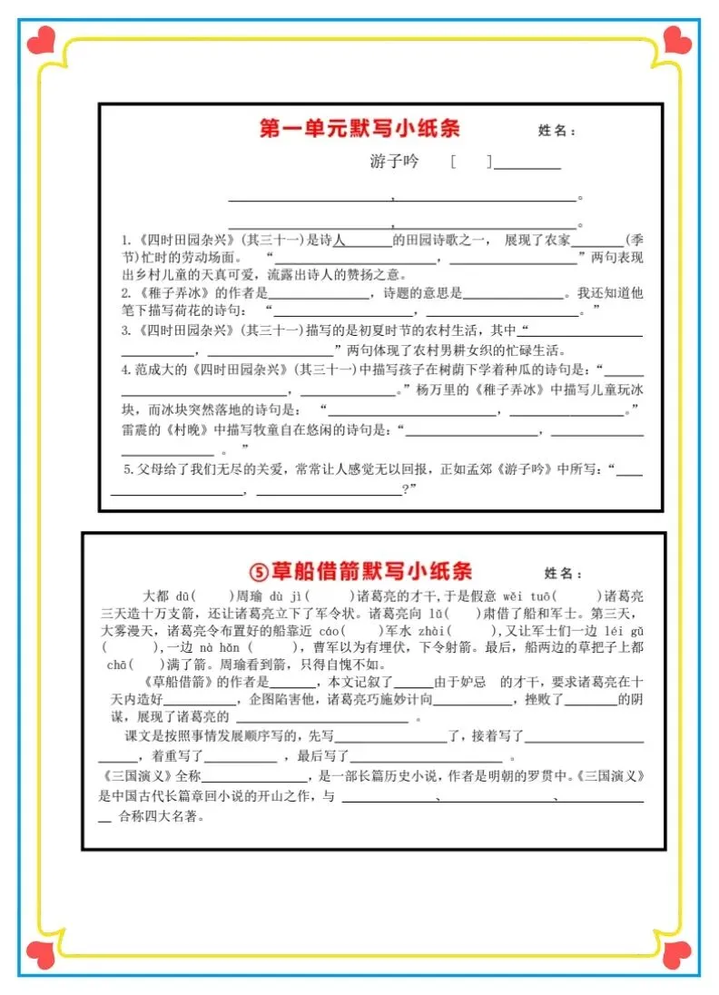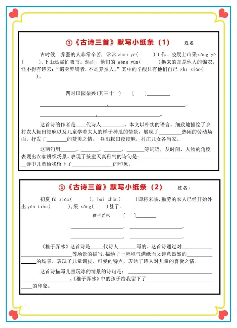 26春五年级下册语文《每课默写小纸条》 电子版可打印