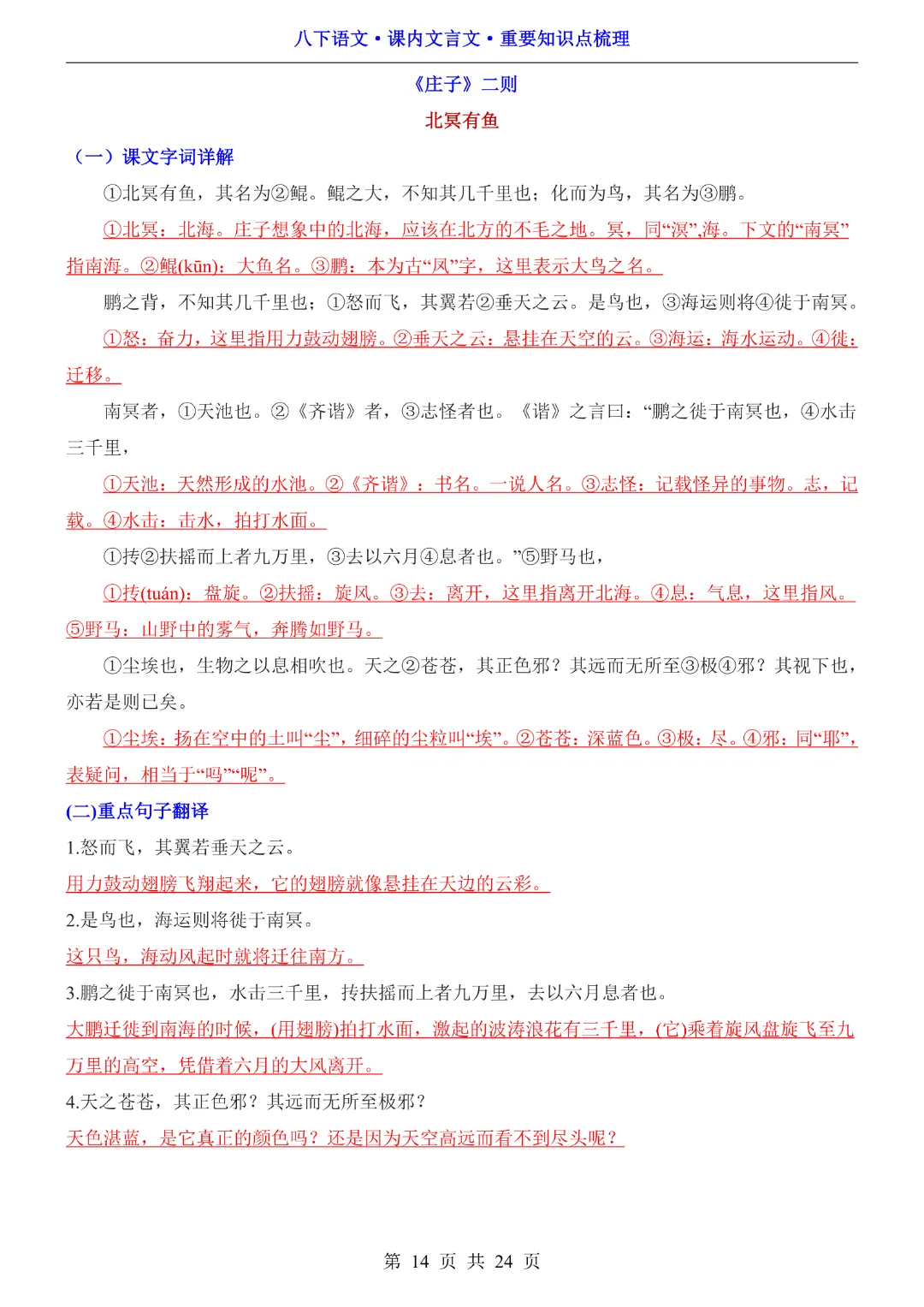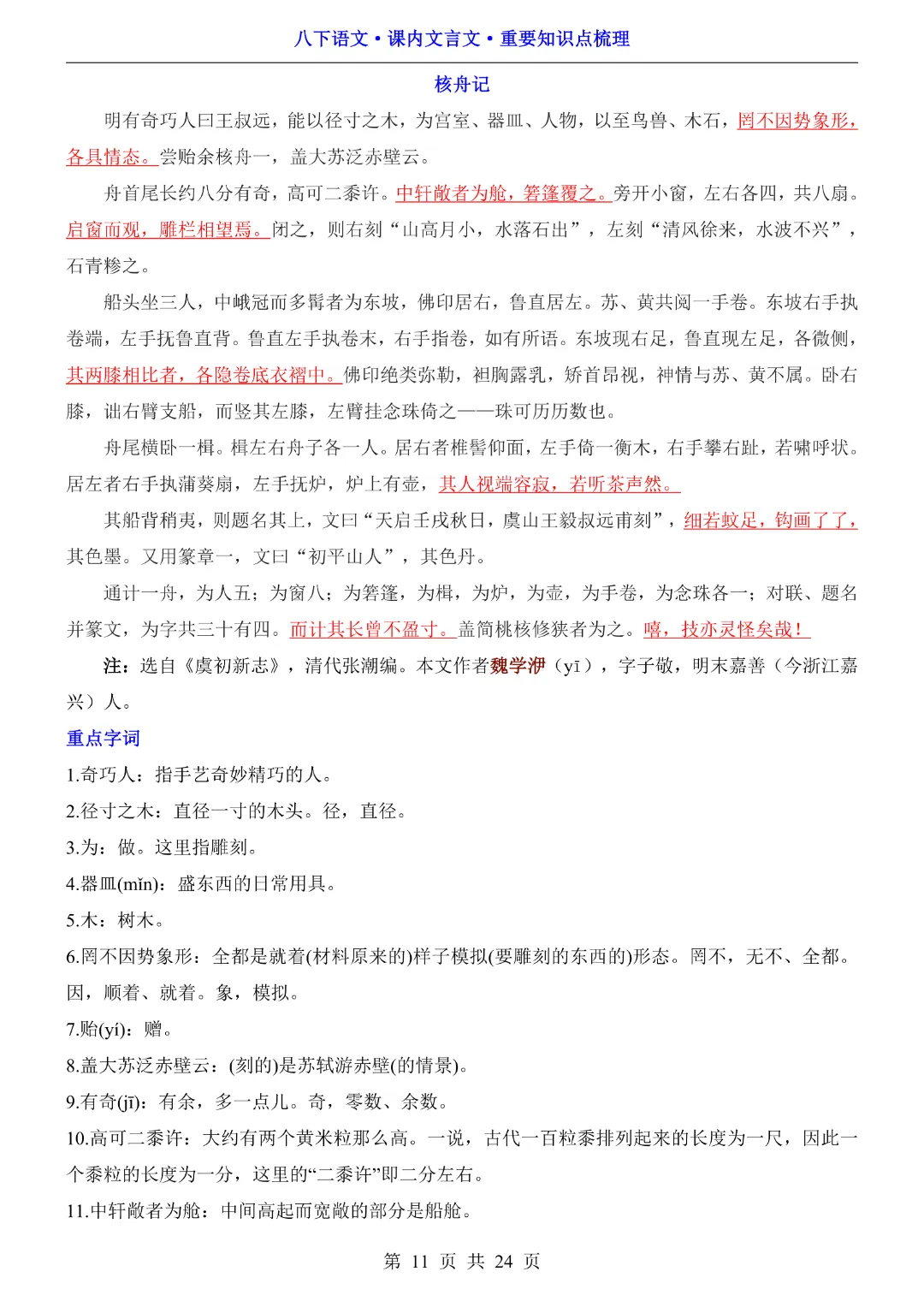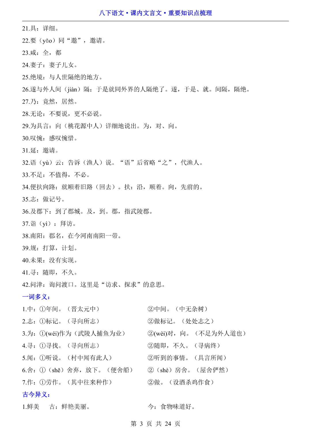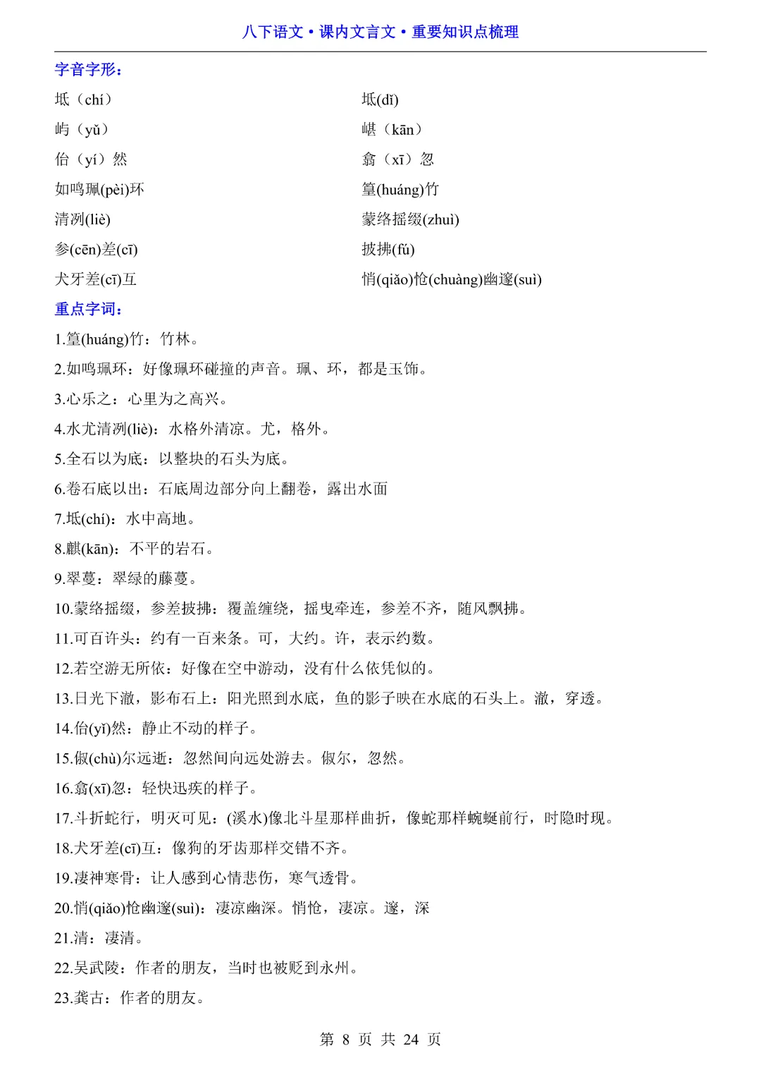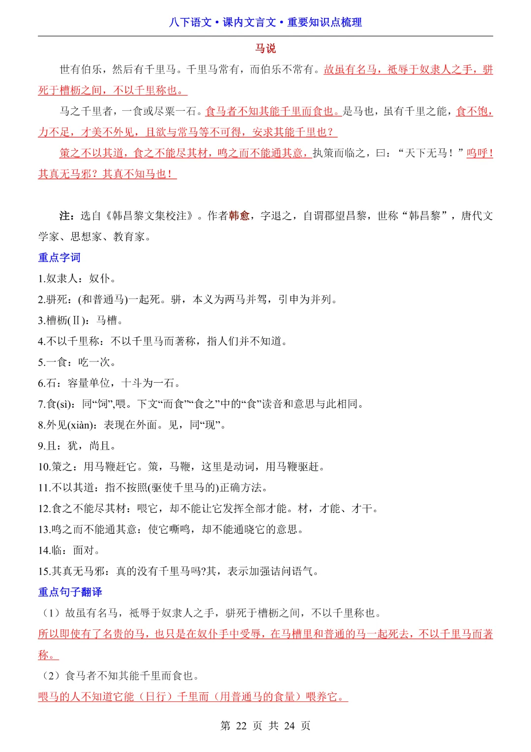 【八年级下册语文】【通用版】初二下册语文《课内文言文重要知识点梳理》|完整高清可打印