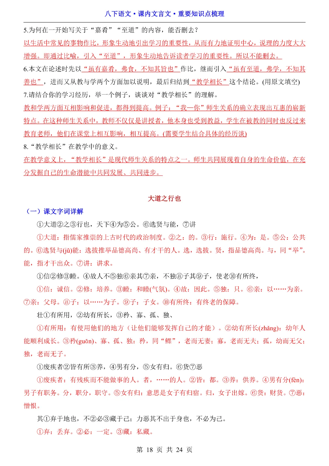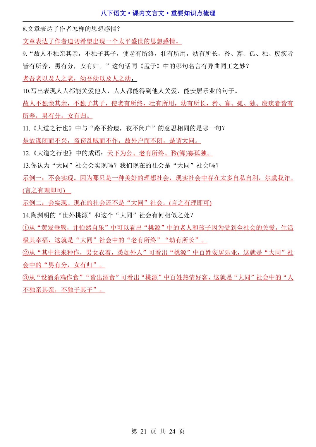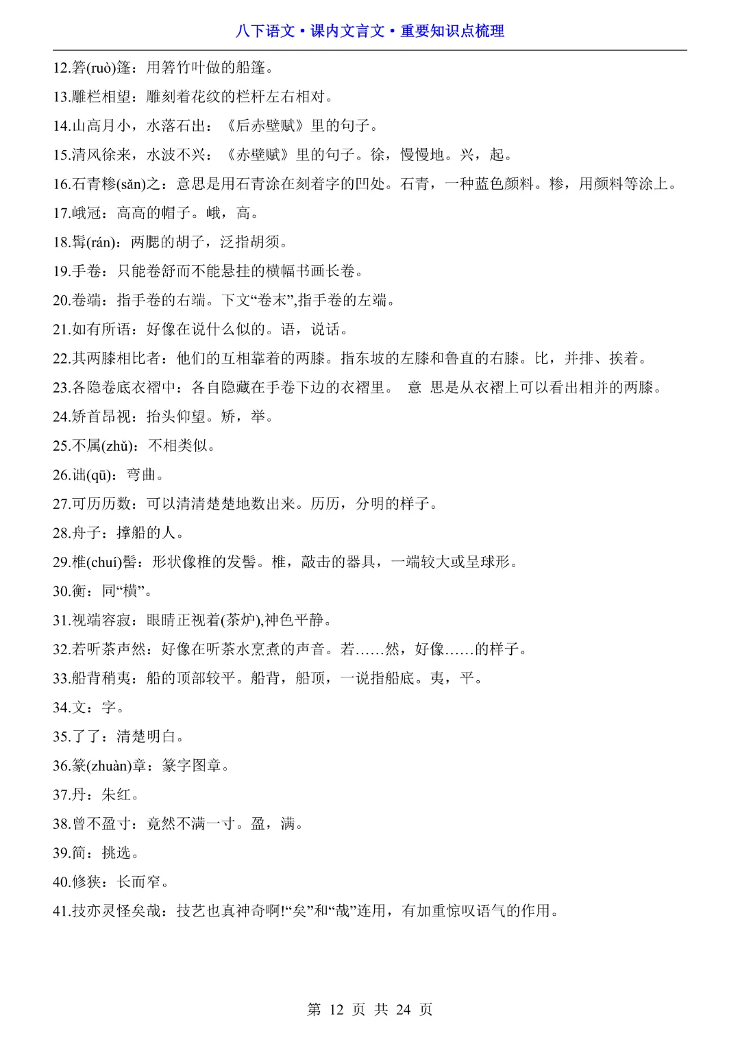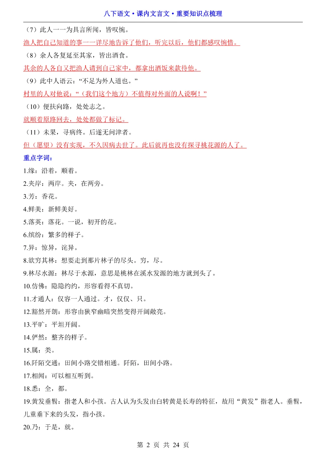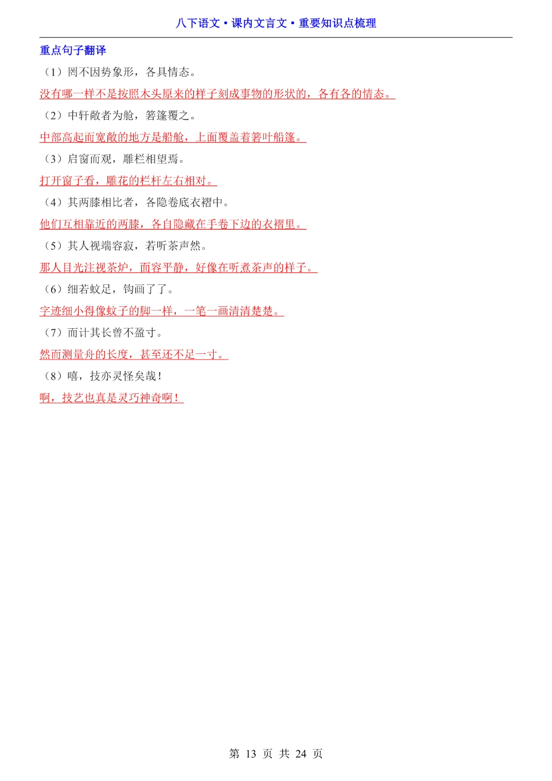 【八年级下册语文】【通用版】初二下册语文《课内文言文重要知识点梳理》|完整高清可打印