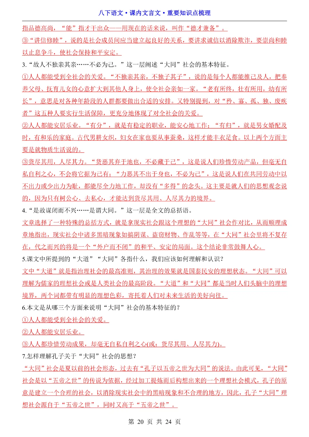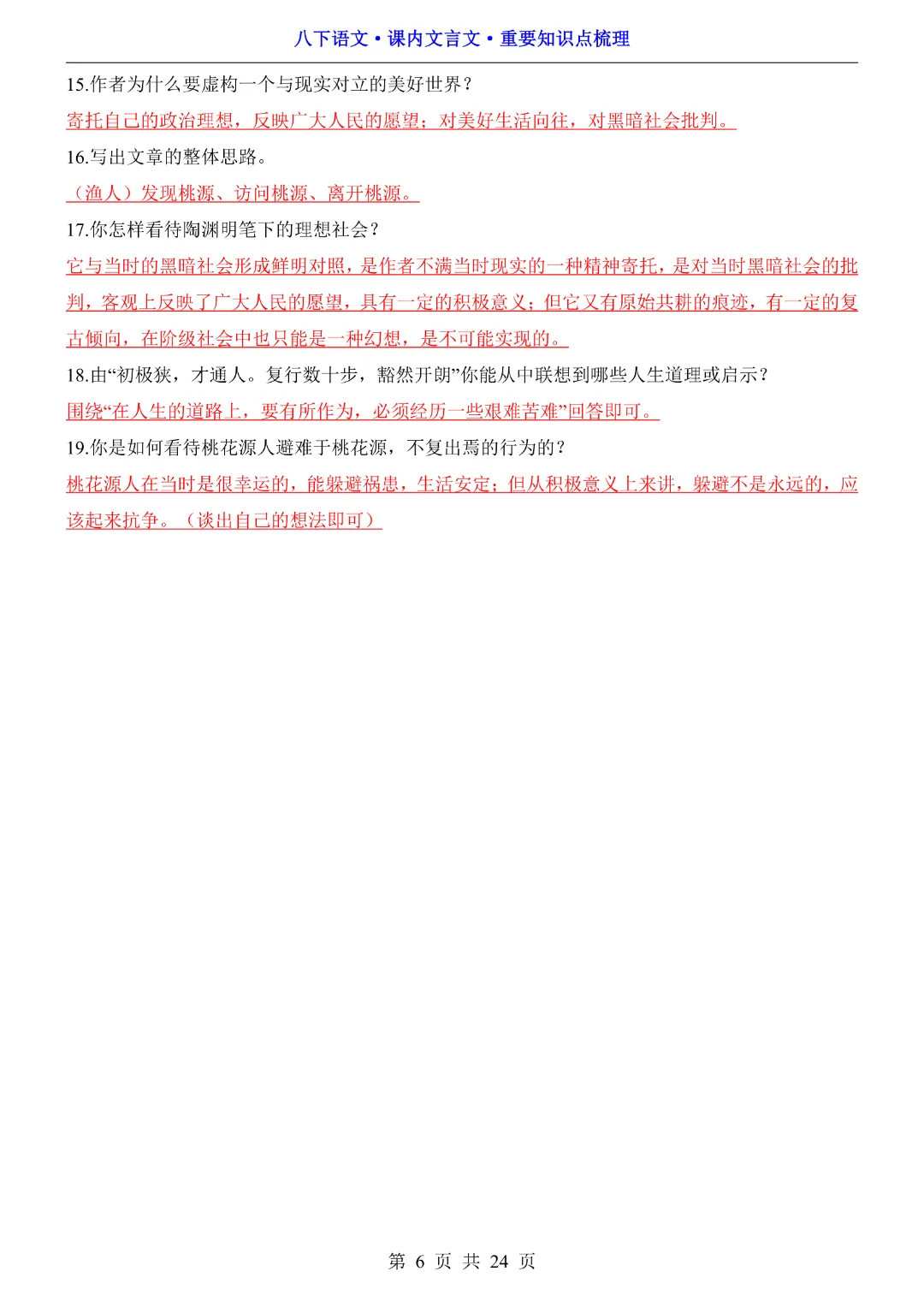 今日给大家分享的是:【八年级下册语文】【通用版】初二下册语文《课内文言文重要知识点梳理》|完整高清电子版可打印