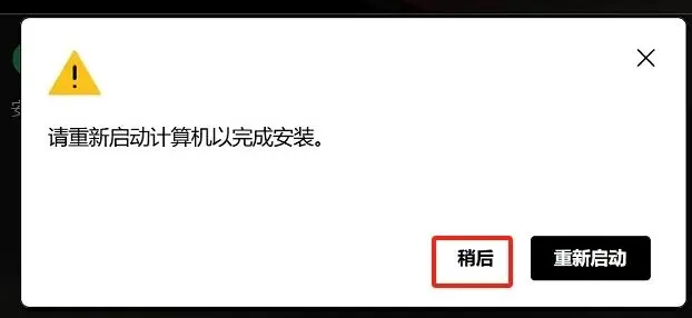6.重启提示,点击【稍后】。