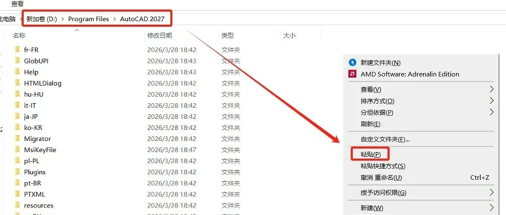 10.进入文件夹,空白处鼠标右键,选择【粘贴】。