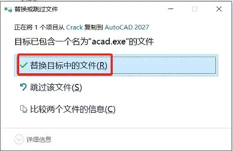 11.冲突提示,选择【替换目标中的文件】。