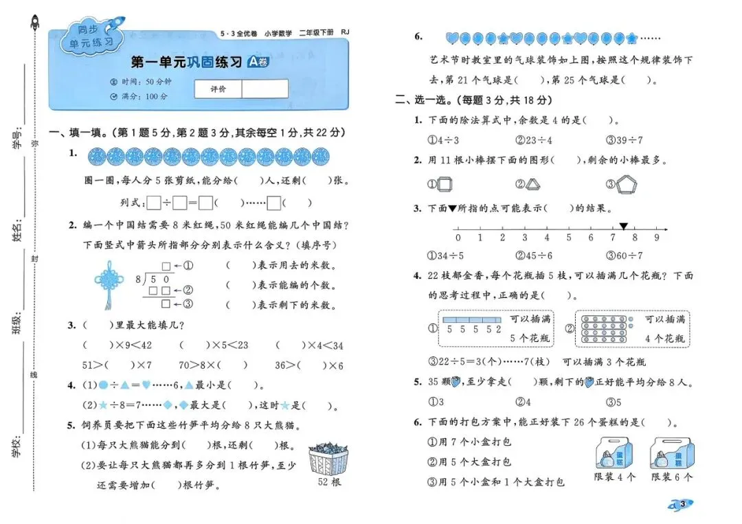 「七彩课堂人教版数学1~6年级《预习卡+课课练》」