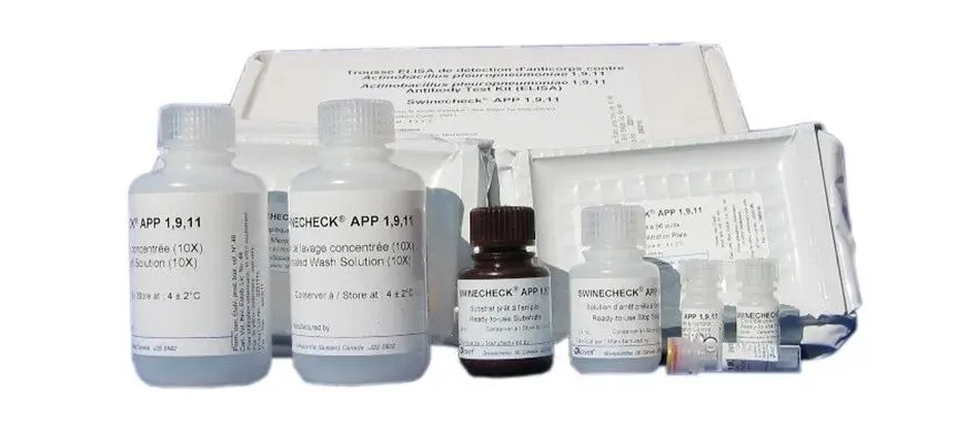 由胸膜肺炎放线杆菌血清型1、9、11引起的胸膜肺炎是一种重要的猪病,可造成相当大的经济损失。牛群通常长期感染,没有临床症状。然而,在压力大的情况下,可能会发生一些临床病例并导致死亡。由于通过气道的水平传播非常重要,而且感染通常不明显,因此血清学成为检测血清学不可或缺的工具。