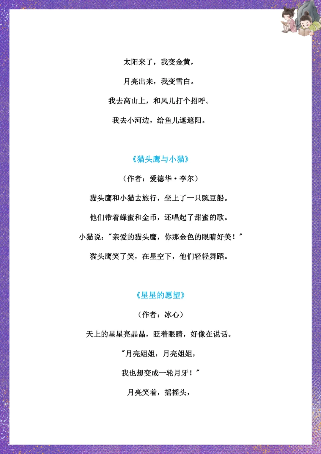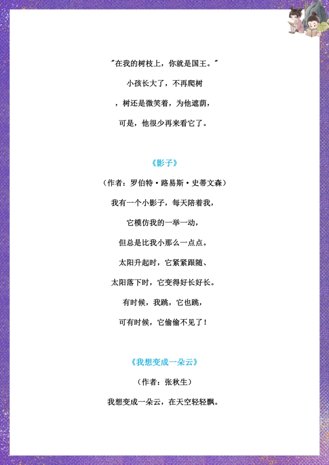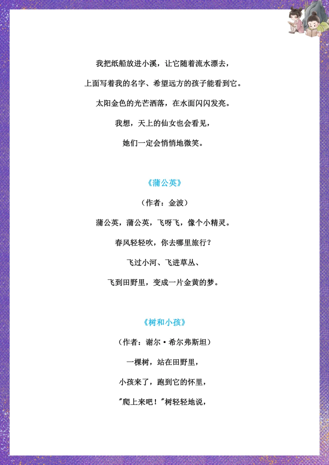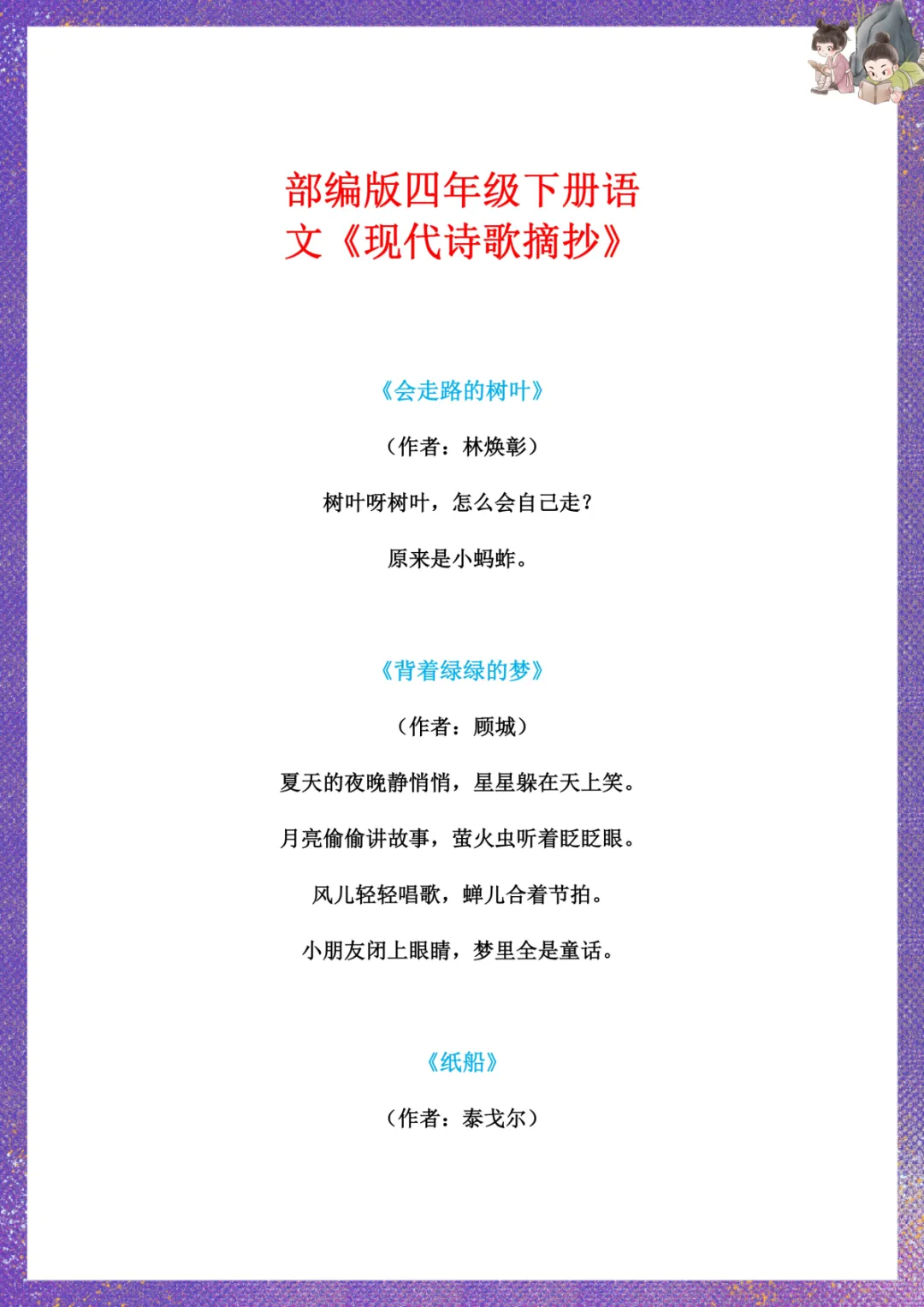 部编版四年级下册语文:《现代诗歌摘抄》电子版可下载打印