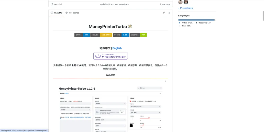 git clone https://github.com/harry0703/MoneyPrinterTurbo.gitcd MoneyPrinterTurbo